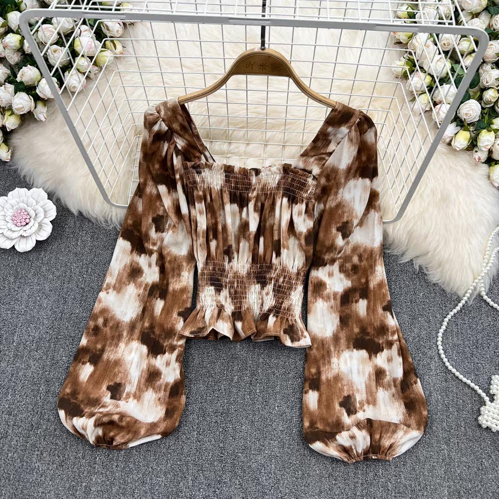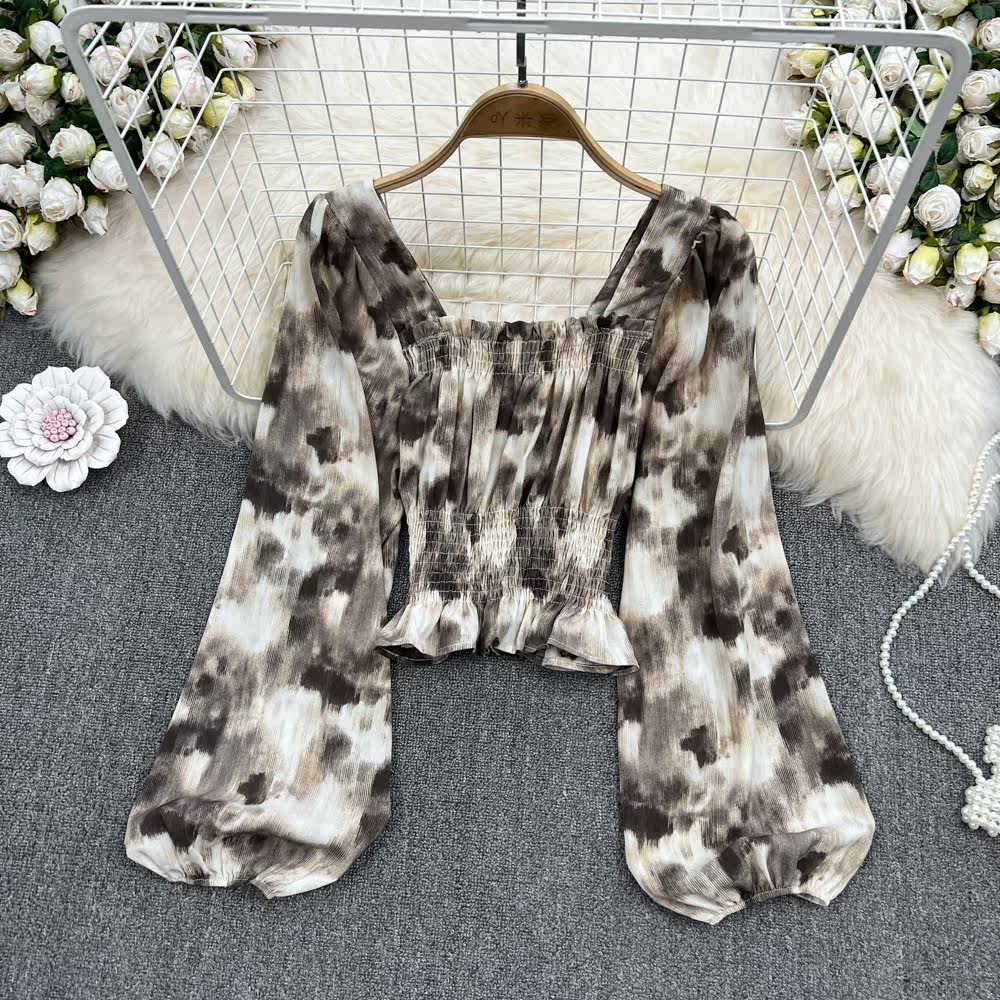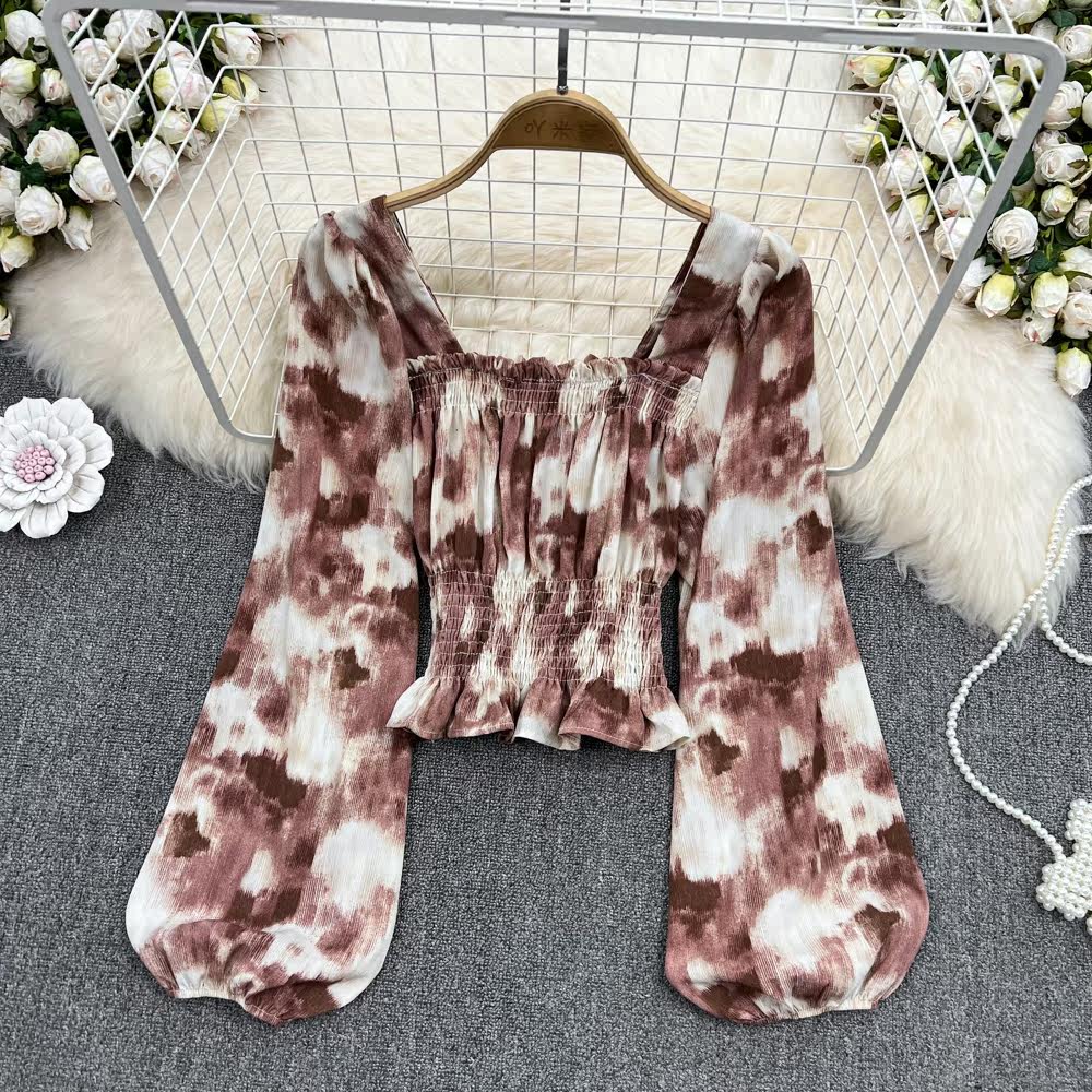 Осенняя демисезонная дизайнерская рубашка, ретро лонгслив, французский стиль, квадратный вырез, тренд сезона, с рукавом