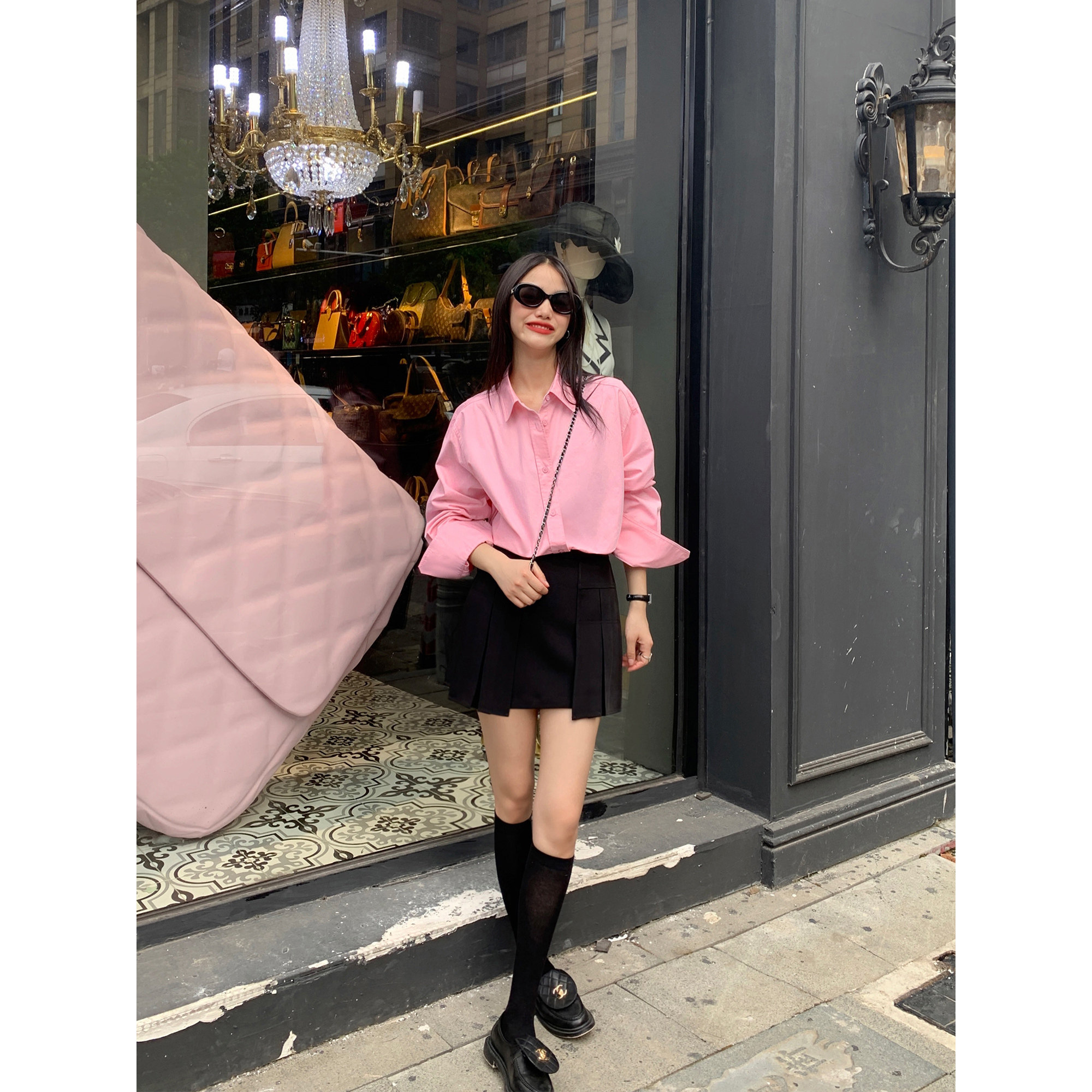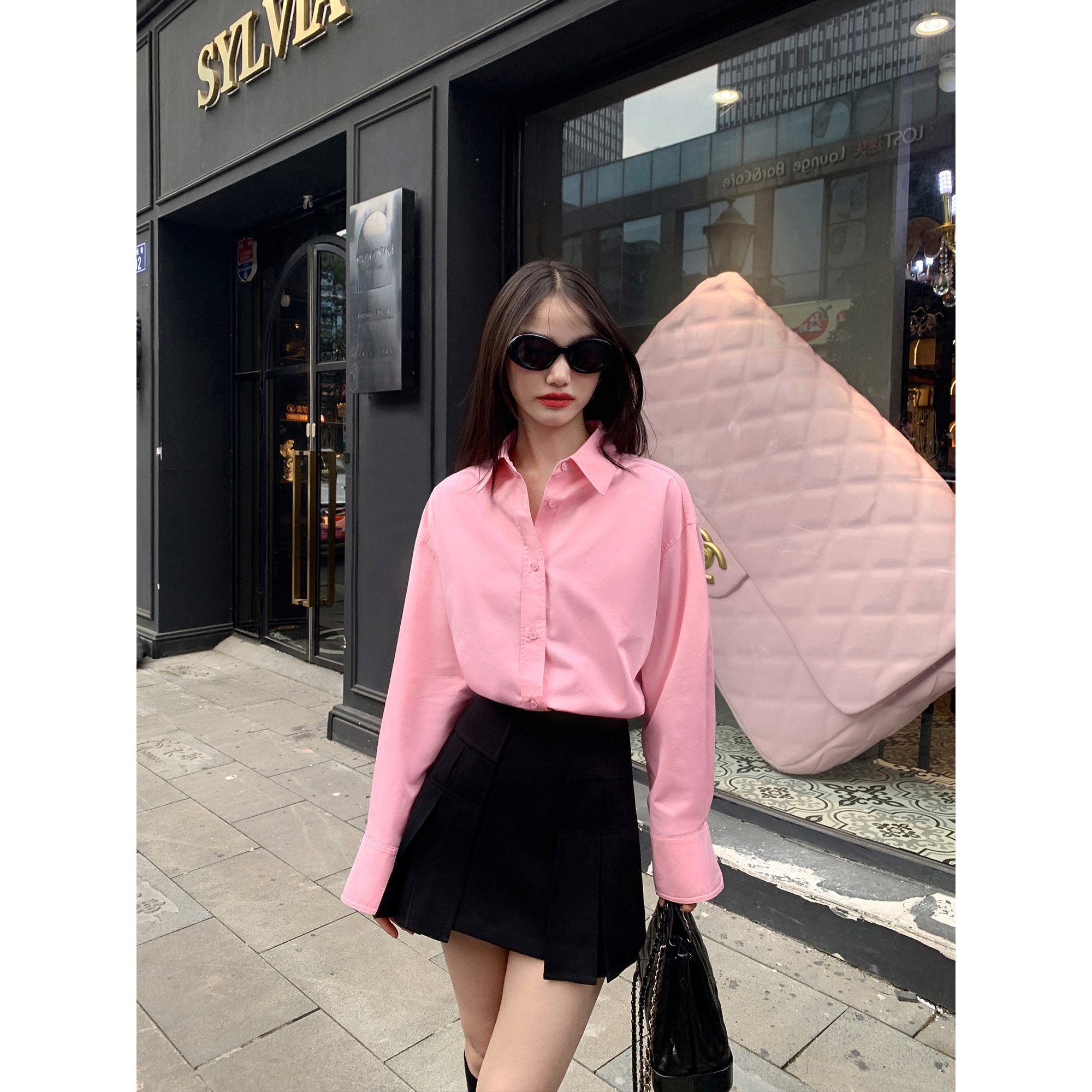 Черная дизайнерская рубашка, свободный крой, коллекция 2023, в корейском стиле, тренд сезона