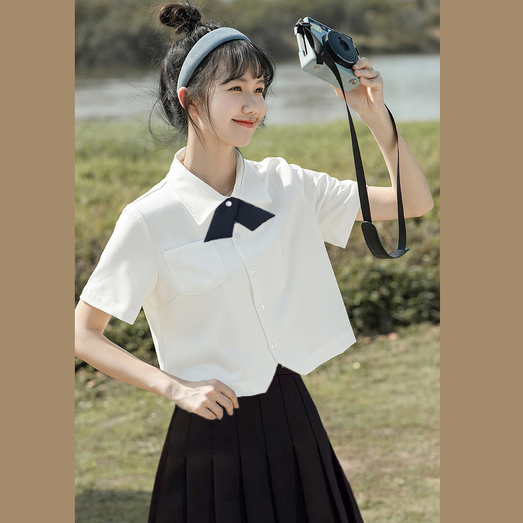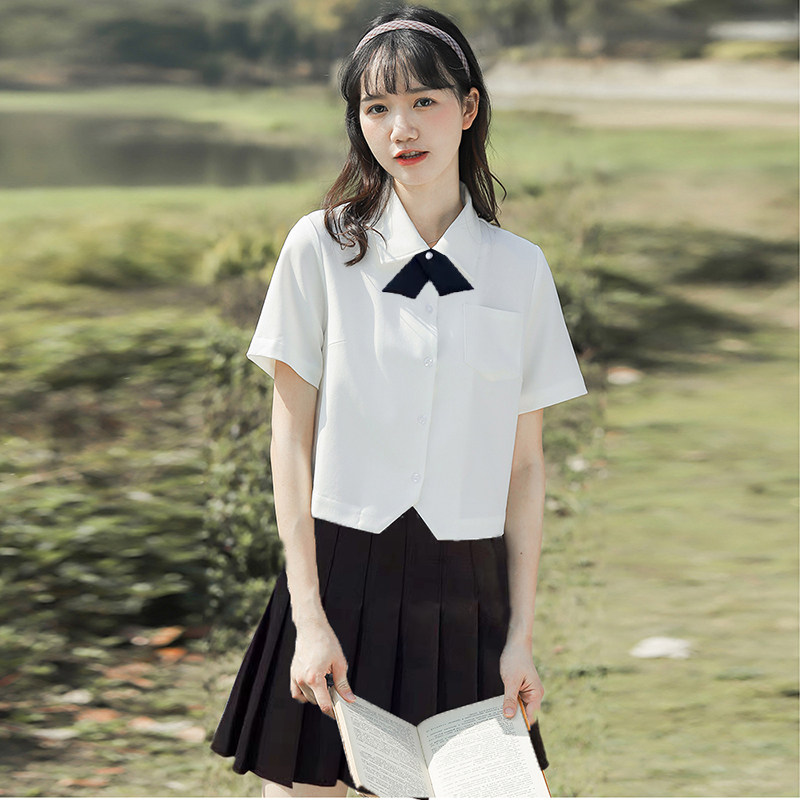 Короткая летняя рубашка, японская студенческая юбка в складку, мини-юбка, комплект