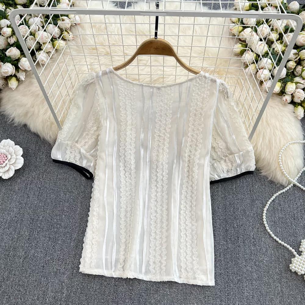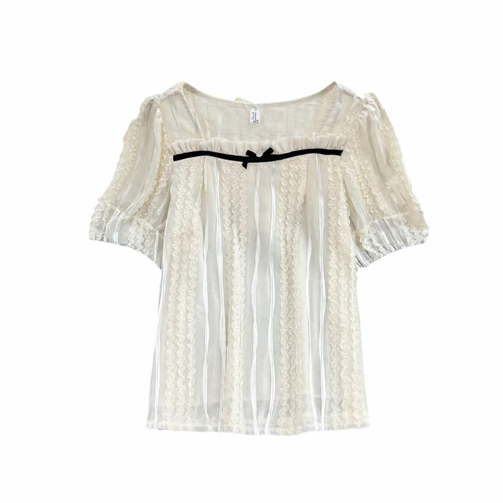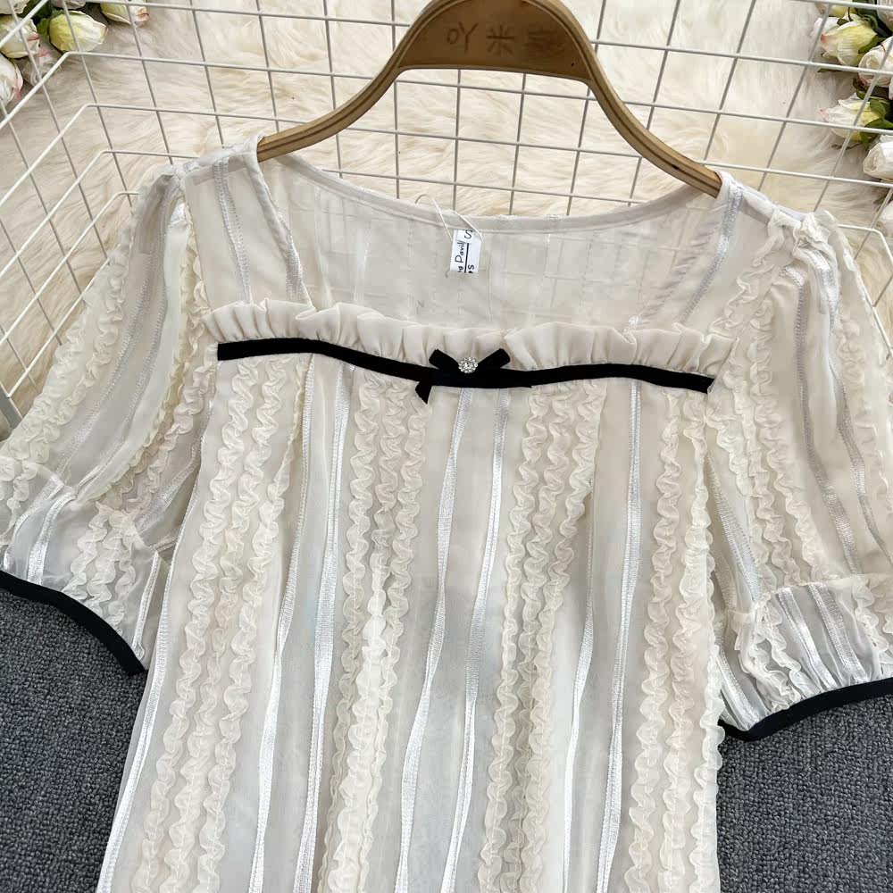 Летняя трехмерная короткая рубашка с бантиком, квадратный вырез, короткий рукав, в цветочек, в западном стиле