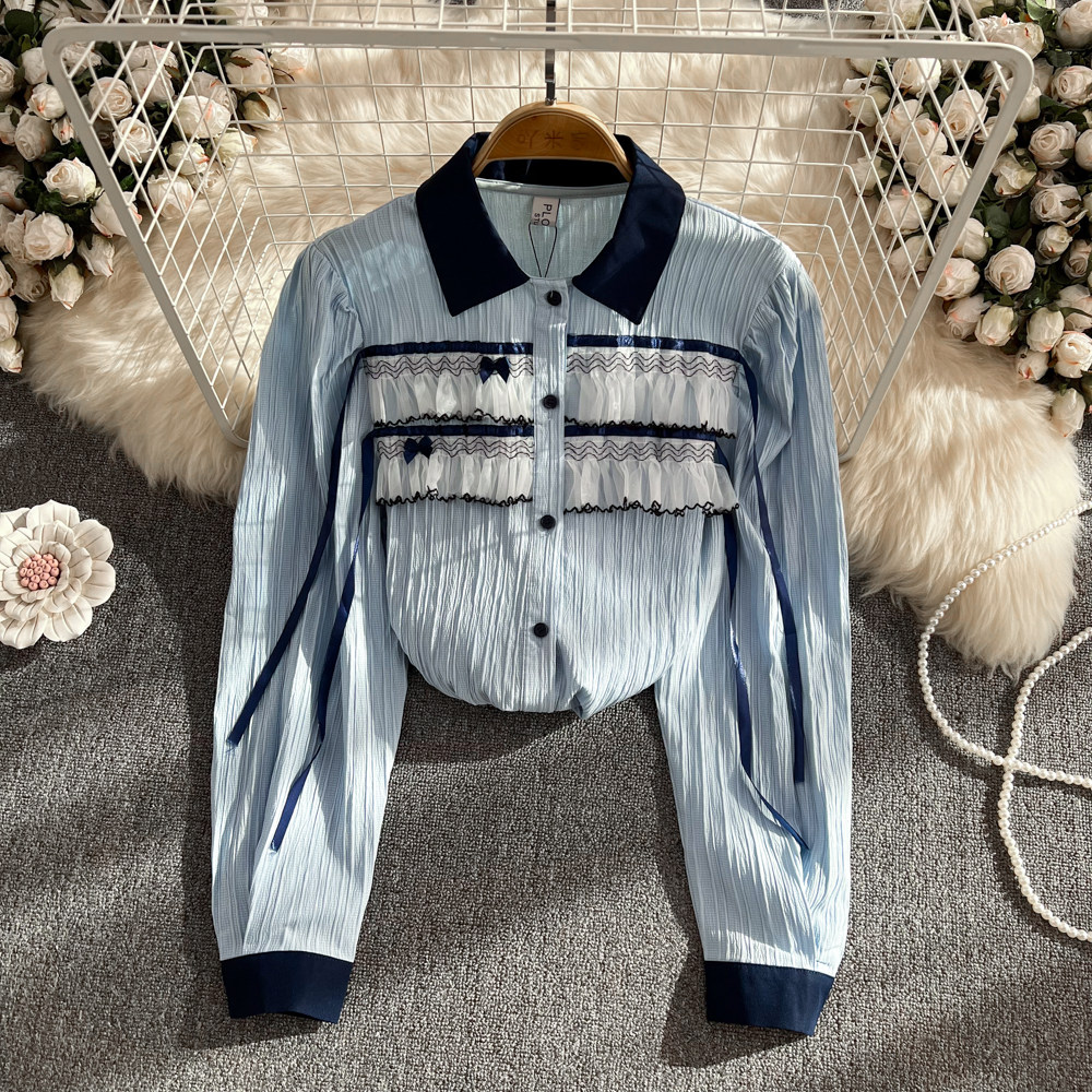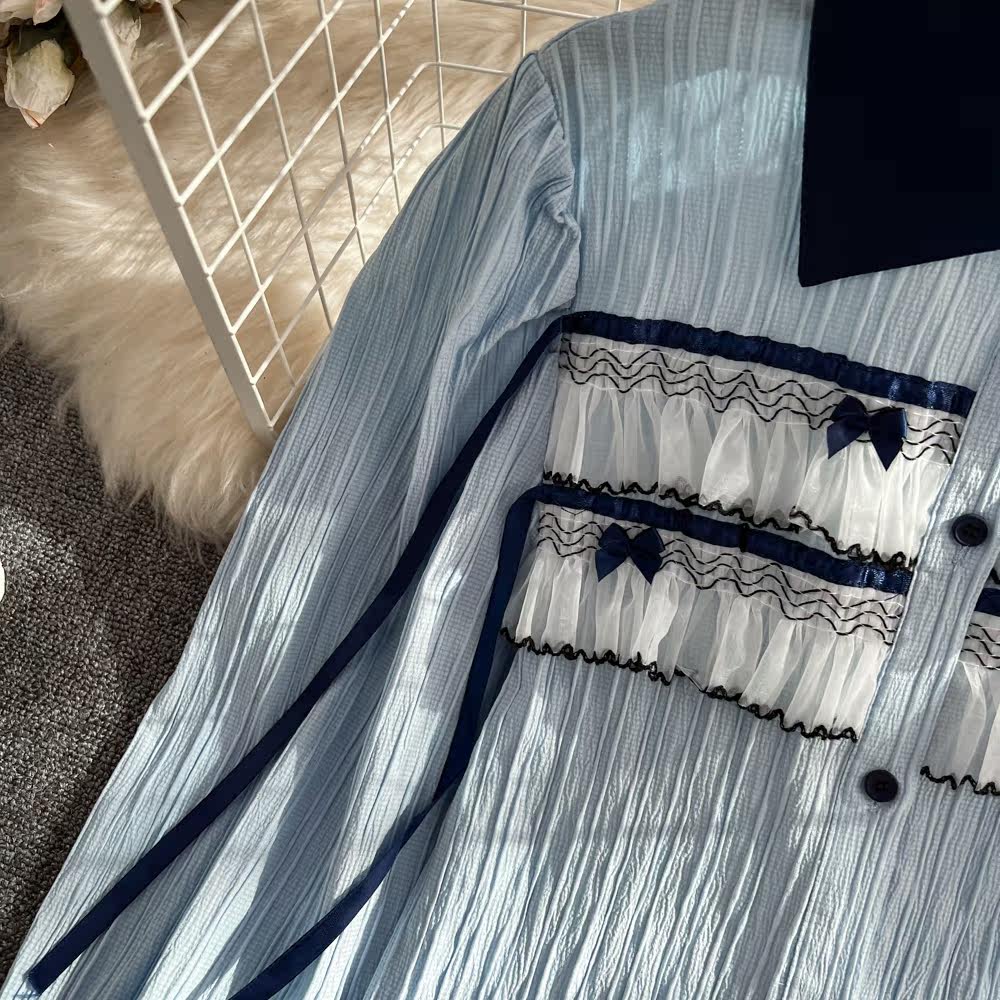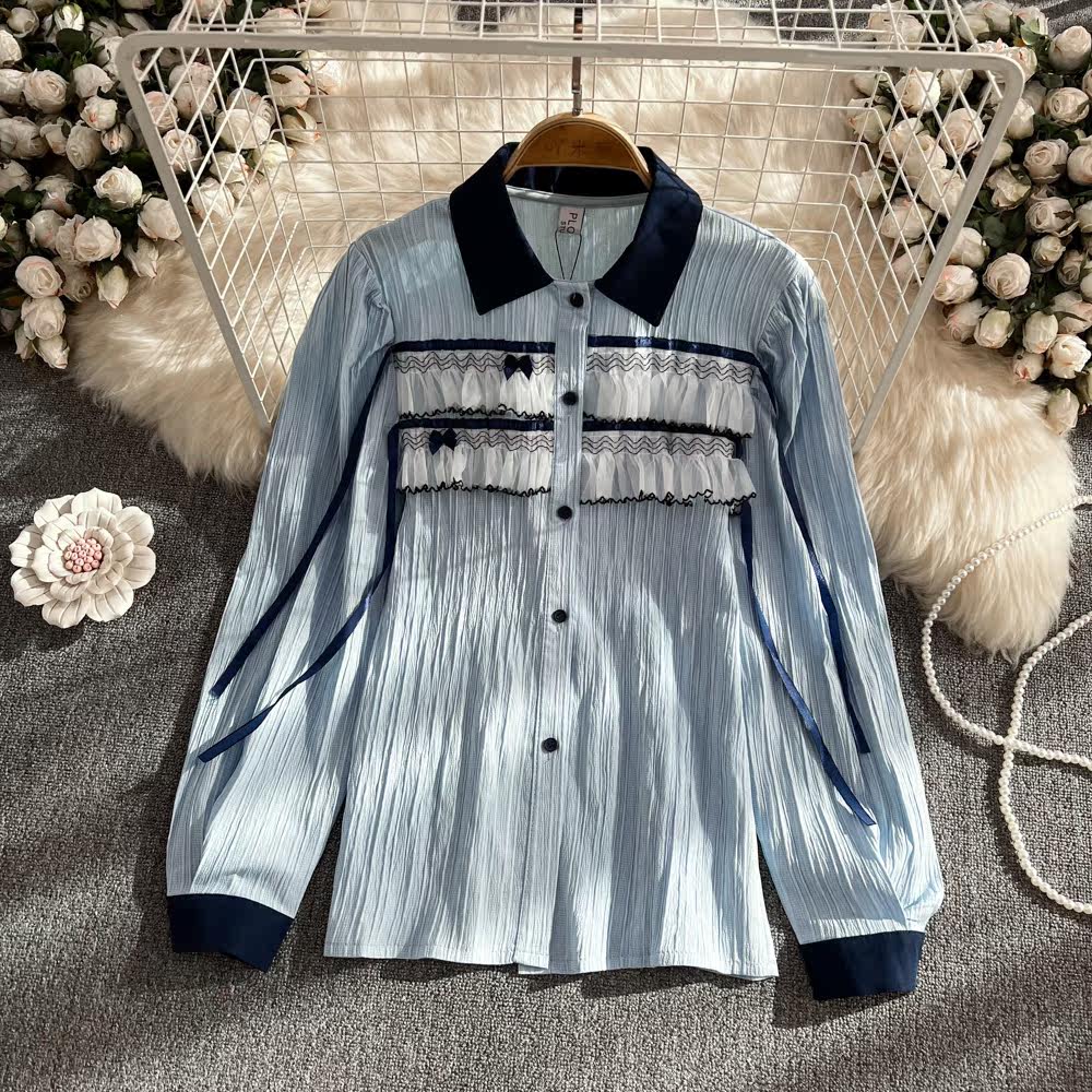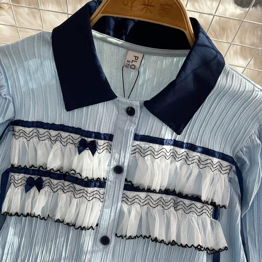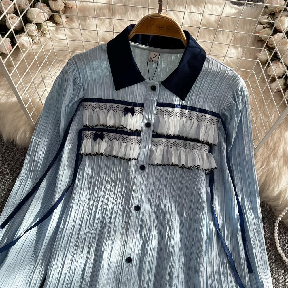 Осенняя модная кружевная рубашка, в корейском стиле, цветочный принт, кружевное платье, в западном стиле, оверсайз
