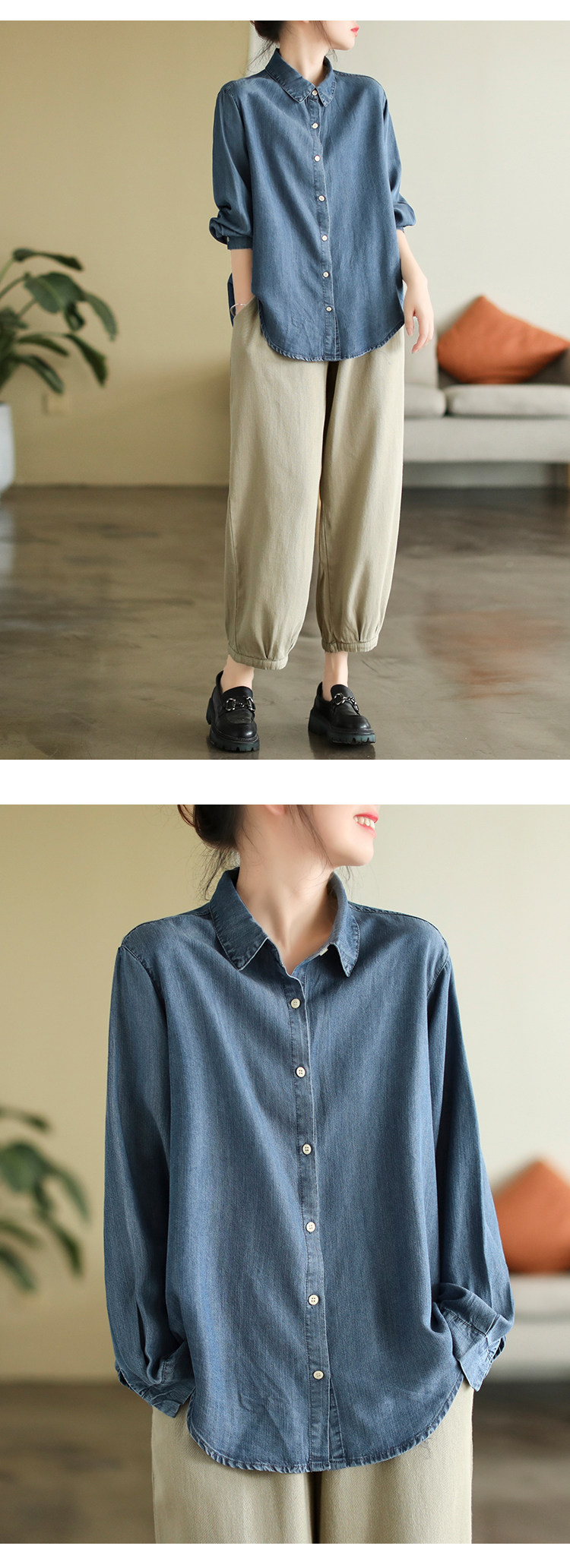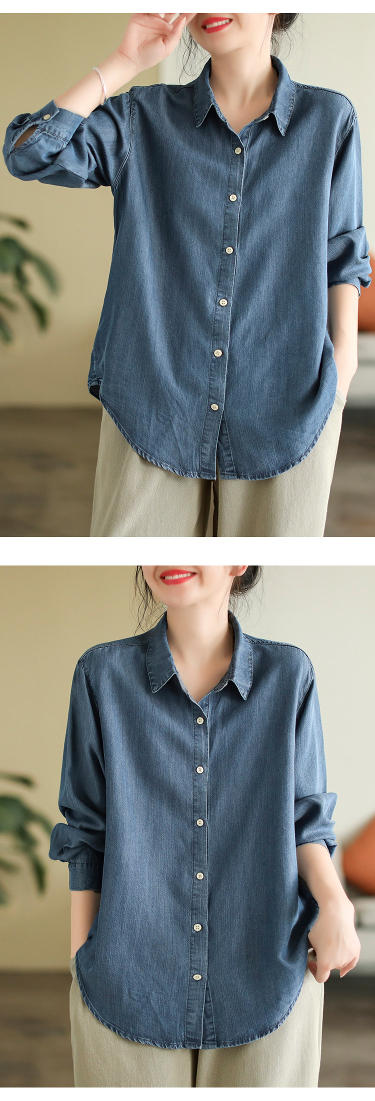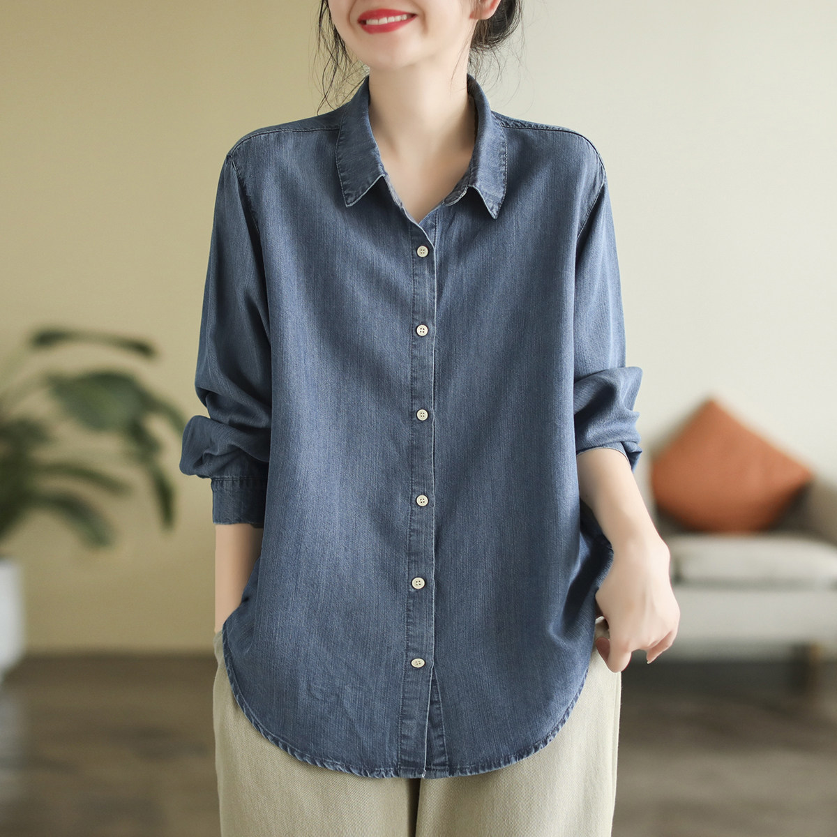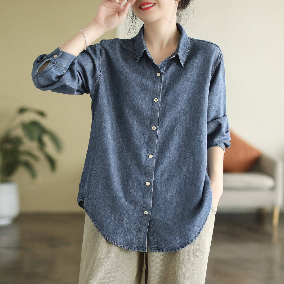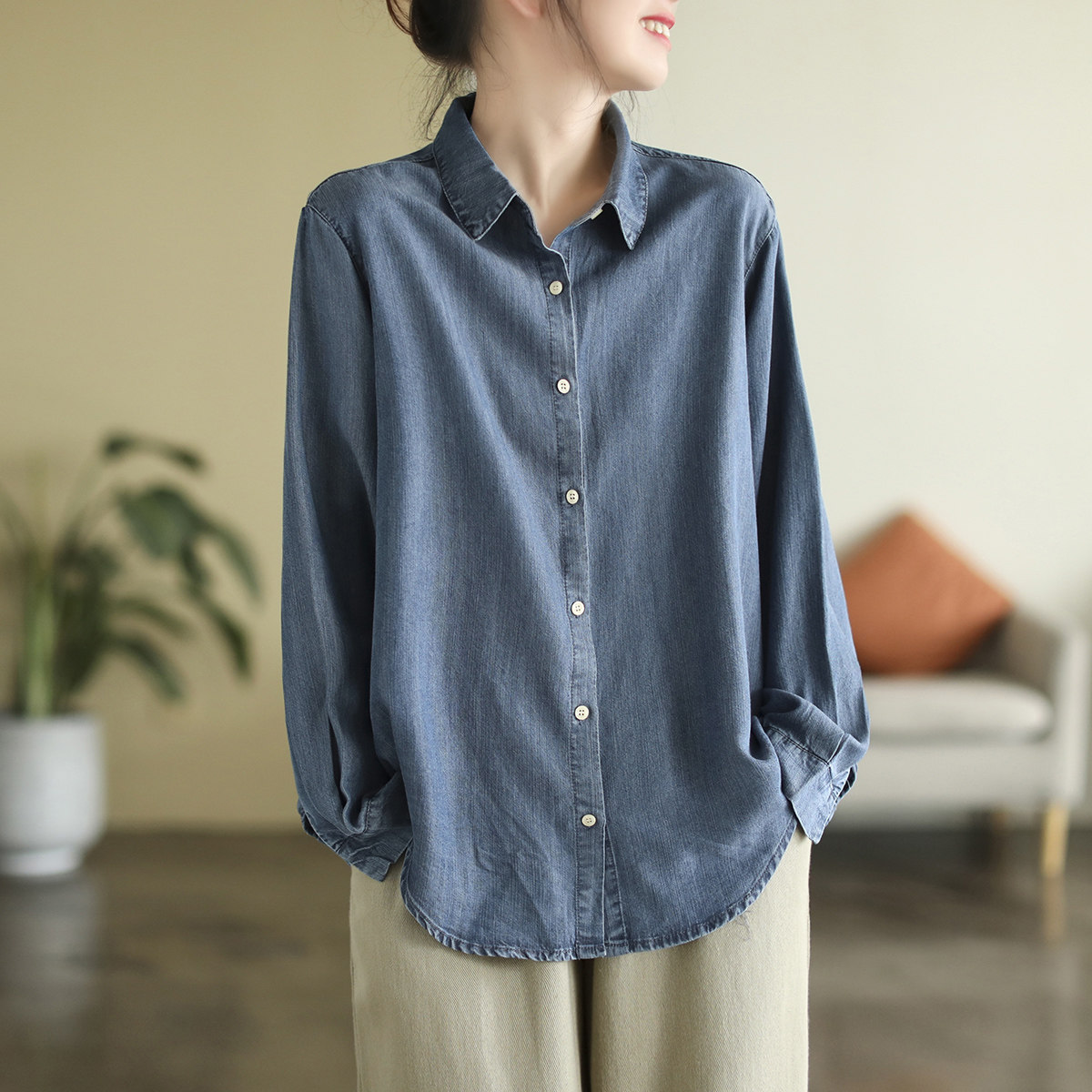 代勒 Хлопковая осенняя рубашка, оверсайз, свободный крой