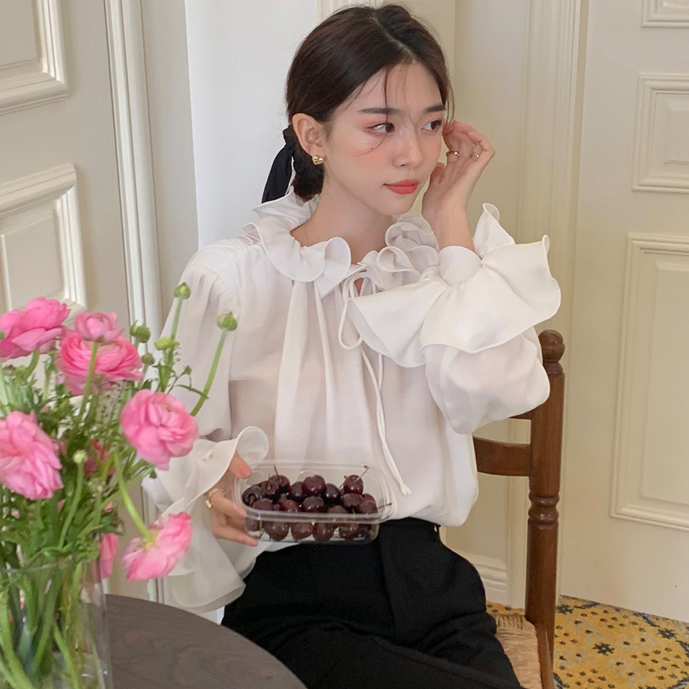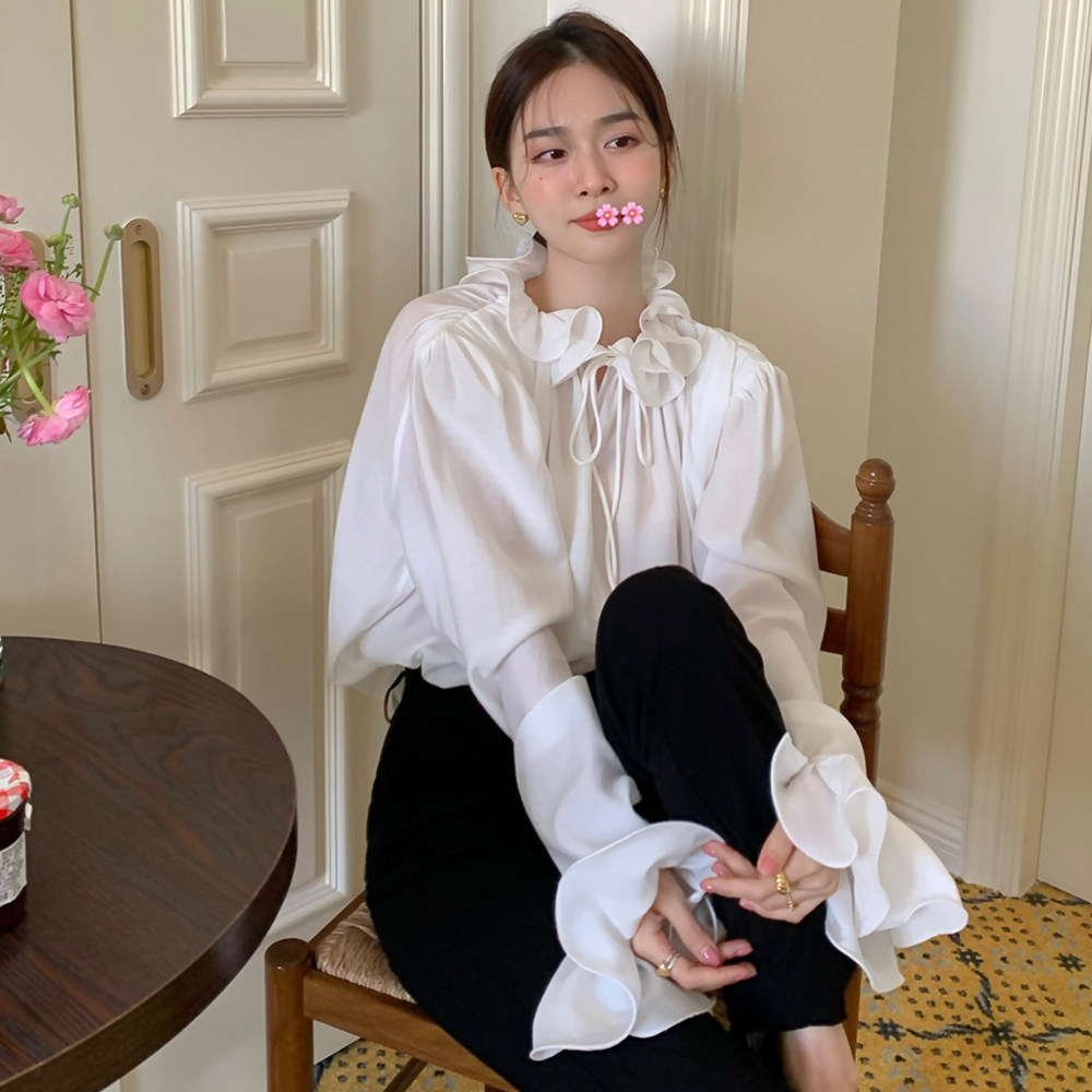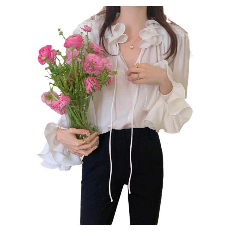 Осенний мегафон, рубашка, лонгслив, французский стиль, V-образный вырез