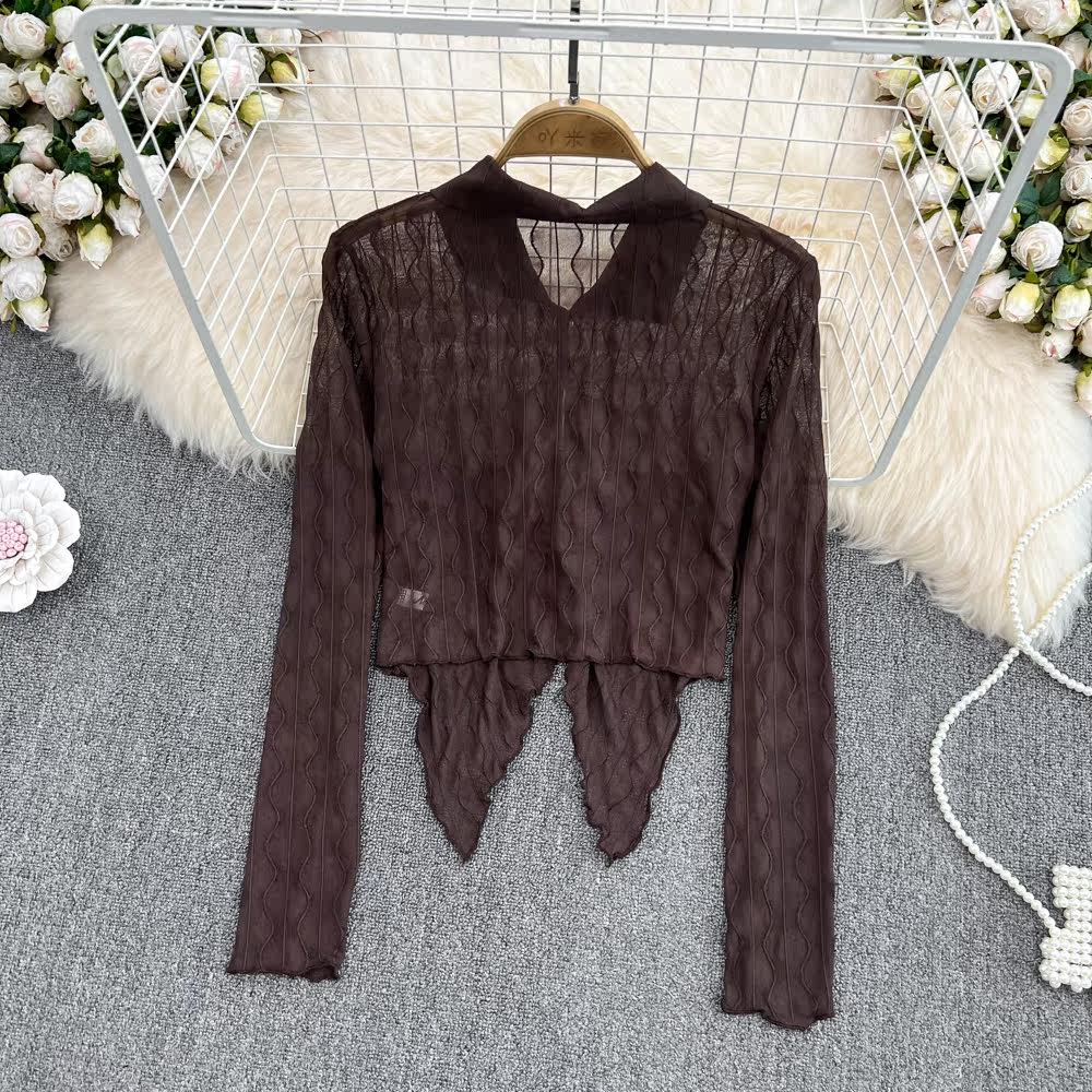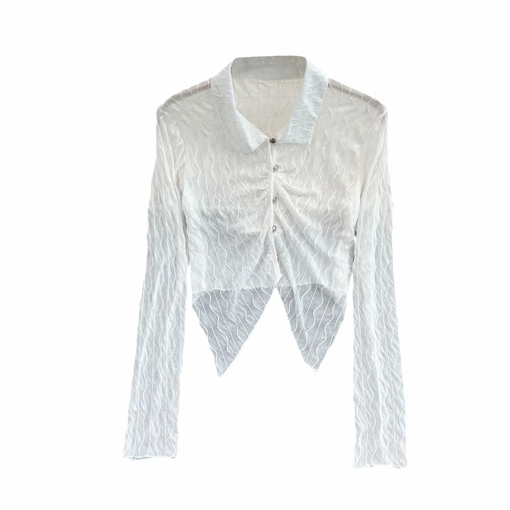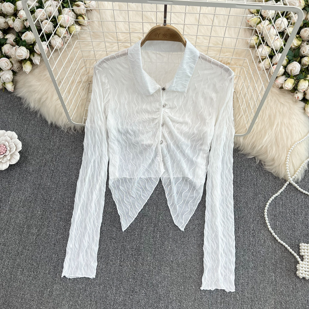 Осенняя дизайнерская короткая рубашка, в корейском стиле, тренд сезона, воротник поло, облегающий крой