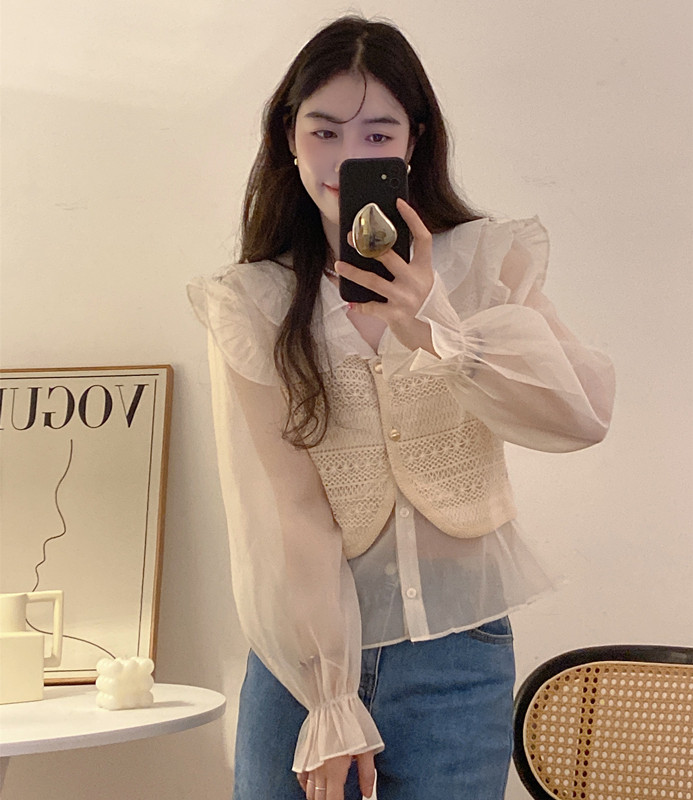 Осенний кружевной жилет, комплект, рубашка, большой размер