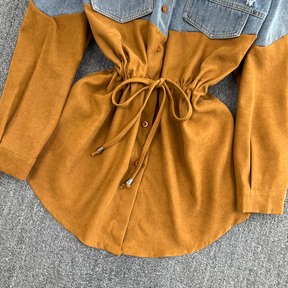 Осенняя дизайнерская длинная рубашка, тренд сезона, свободный крой, средней длины