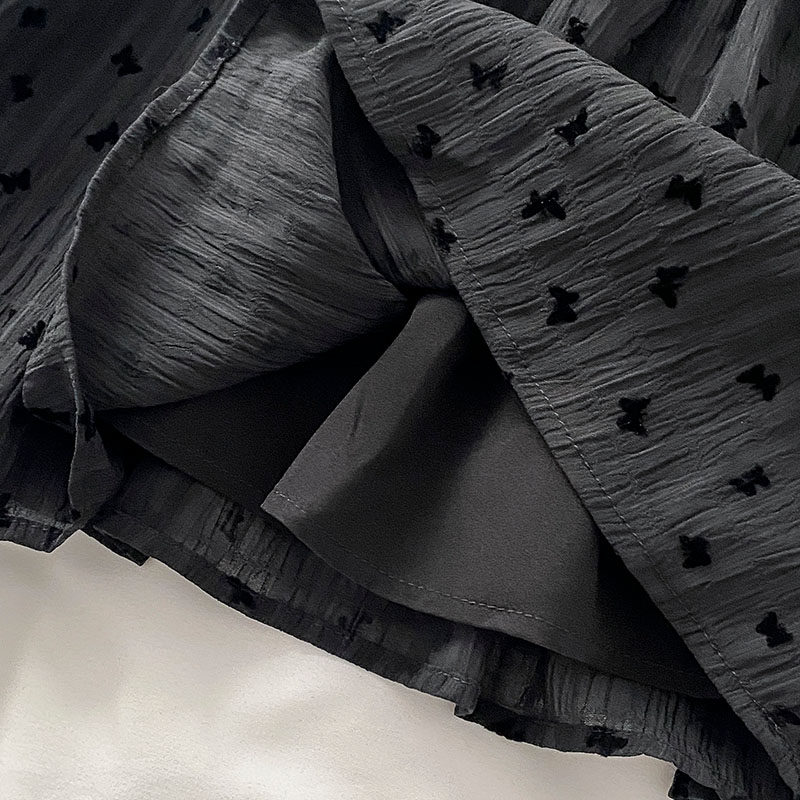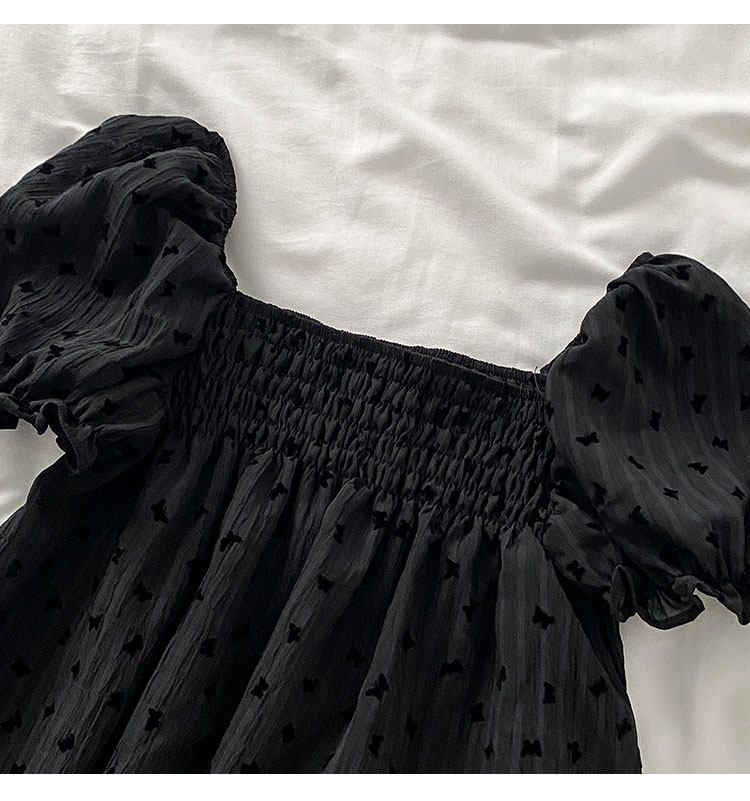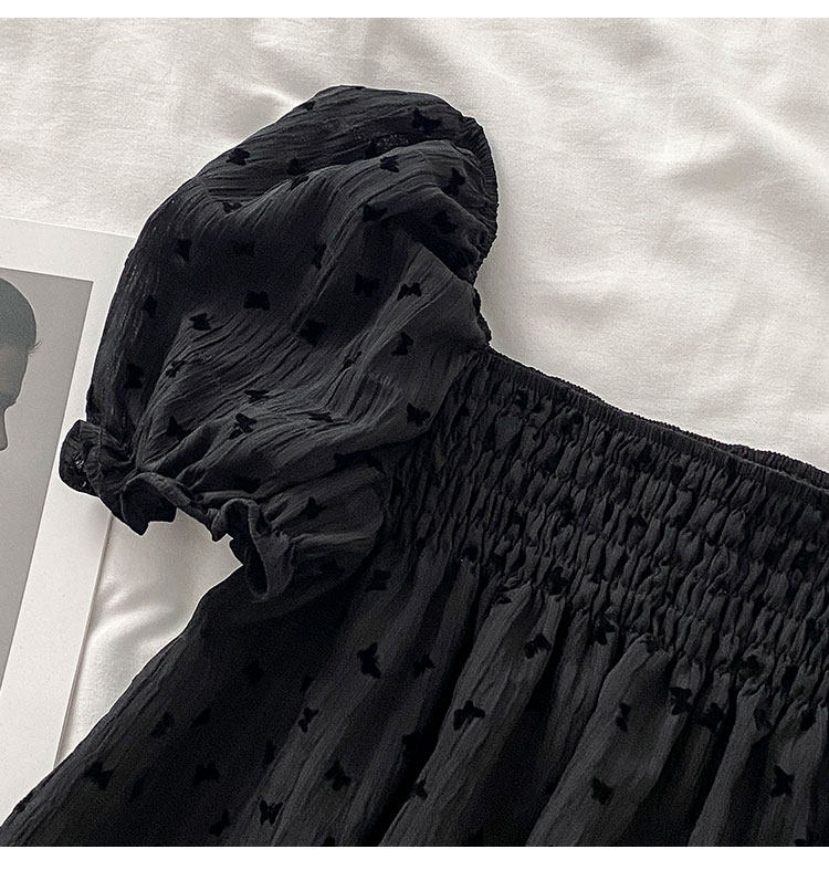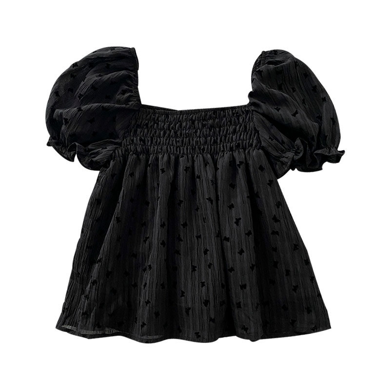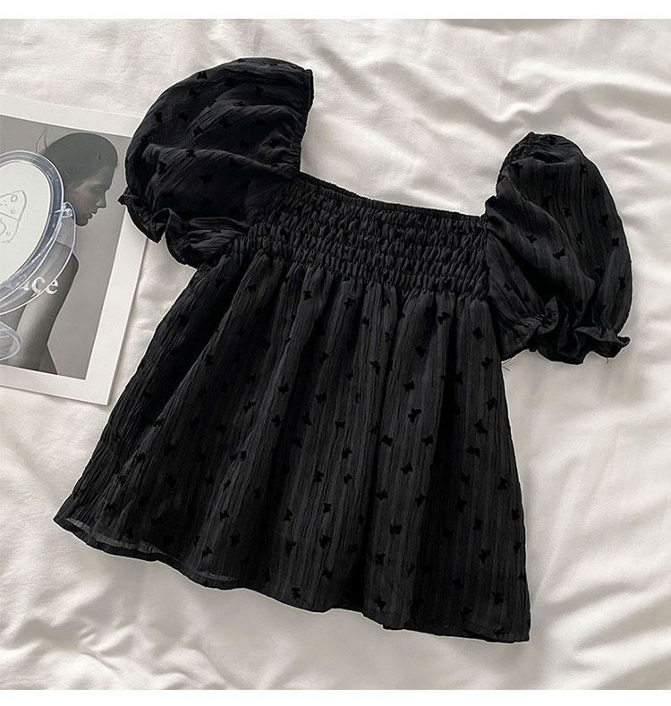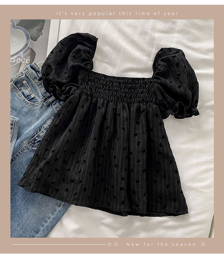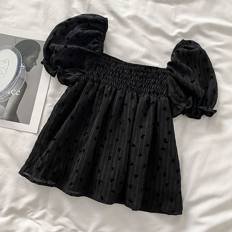 Весенняя летняя одежда, короткая рубашка, рукава фонарики, открытые плечи, французский стиль