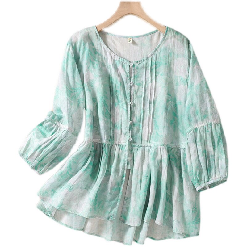 (Трансграничная торговля), рубашка, кукла, японские и корейские, из хлопка и льна, цветочный принт