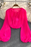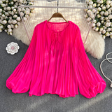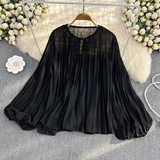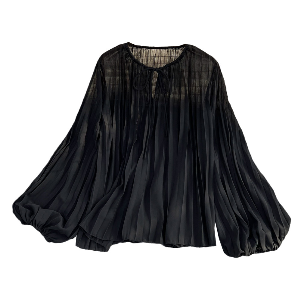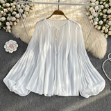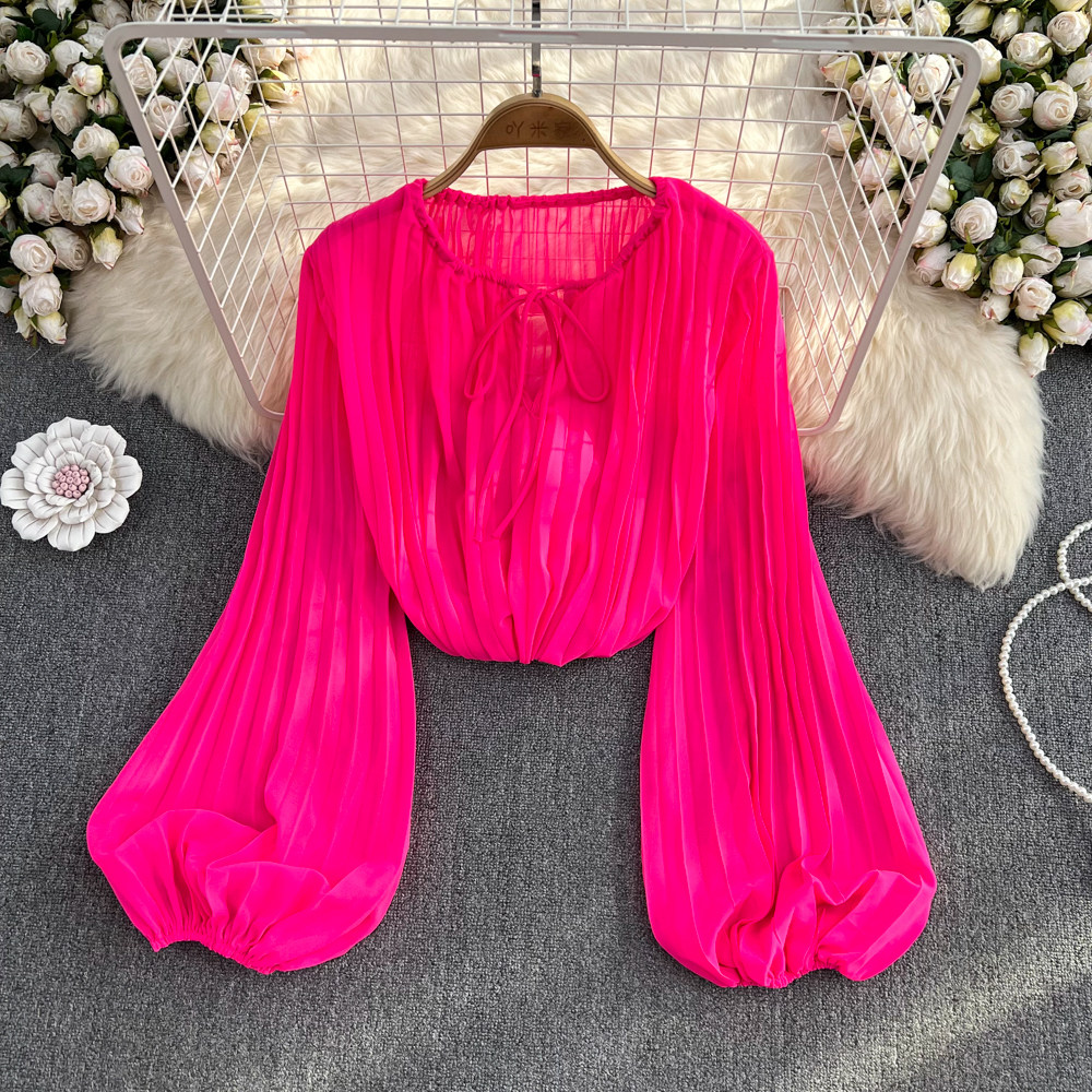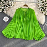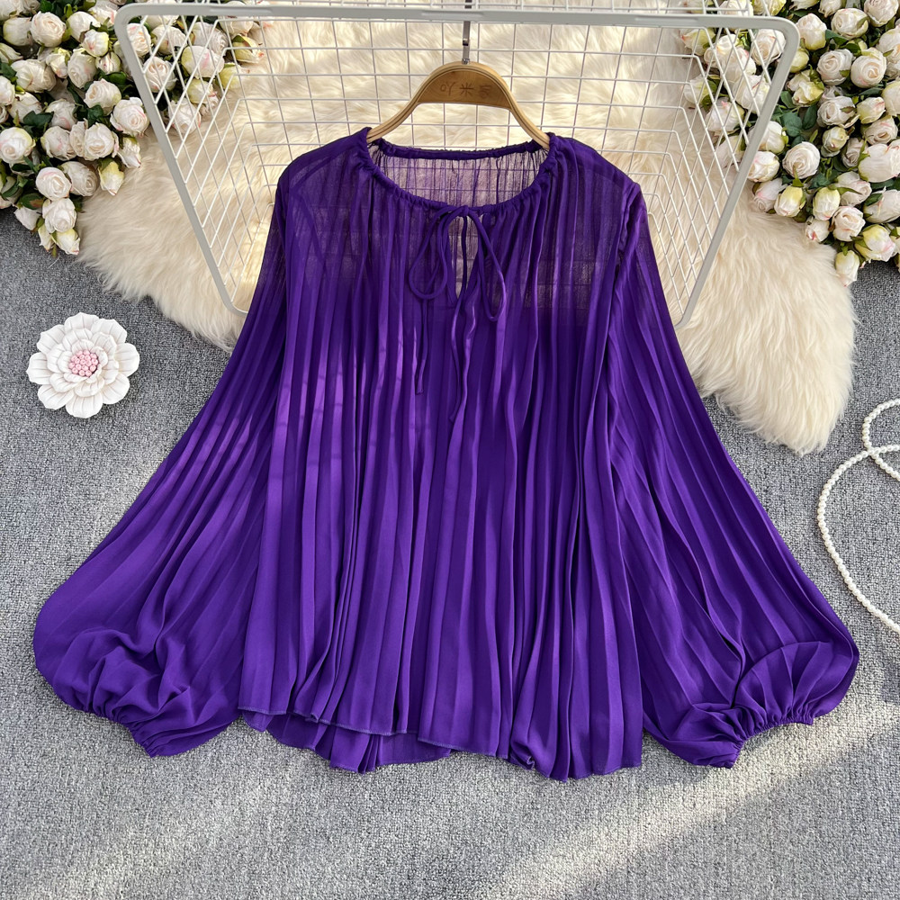 Осенний однотонный фонарь с круглым воротником, лонгслив, рубашка, 2024 года, европейский стиль, в западном стиле