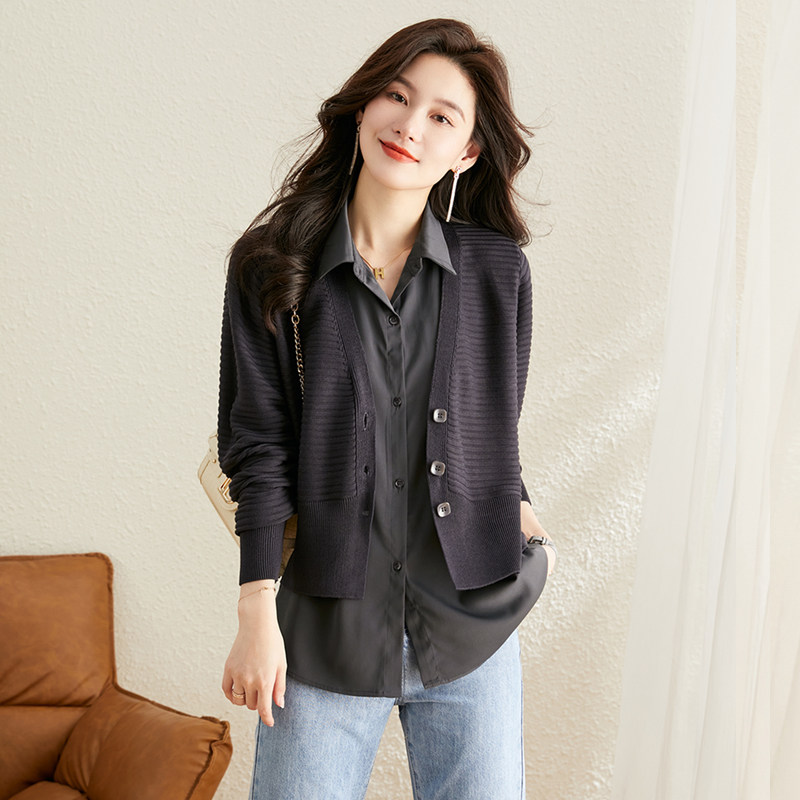 Трикотажный комплект, свитер, осенний кардиган, куртка, рубашка, 2024 уп., в корейском стиле, большой размер