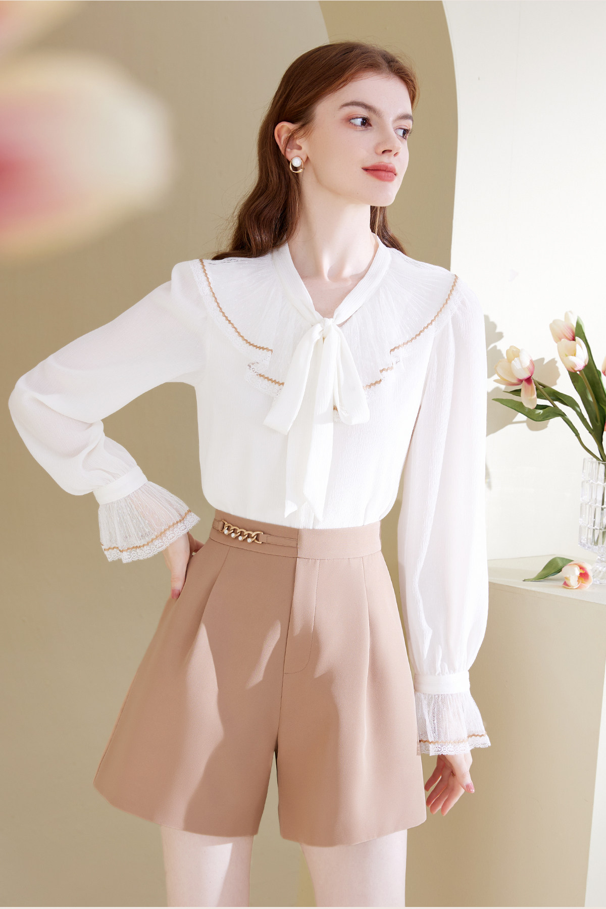 Марлевая белая осенняя рубашка, мегафон с бантиком, футболка, коллекция 2022