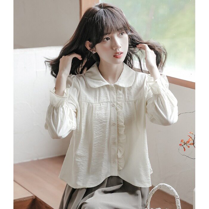 Осенняя свежая рубашка, короткий дизайнерский лонгслив, рукава фонарики, тренд сезона
