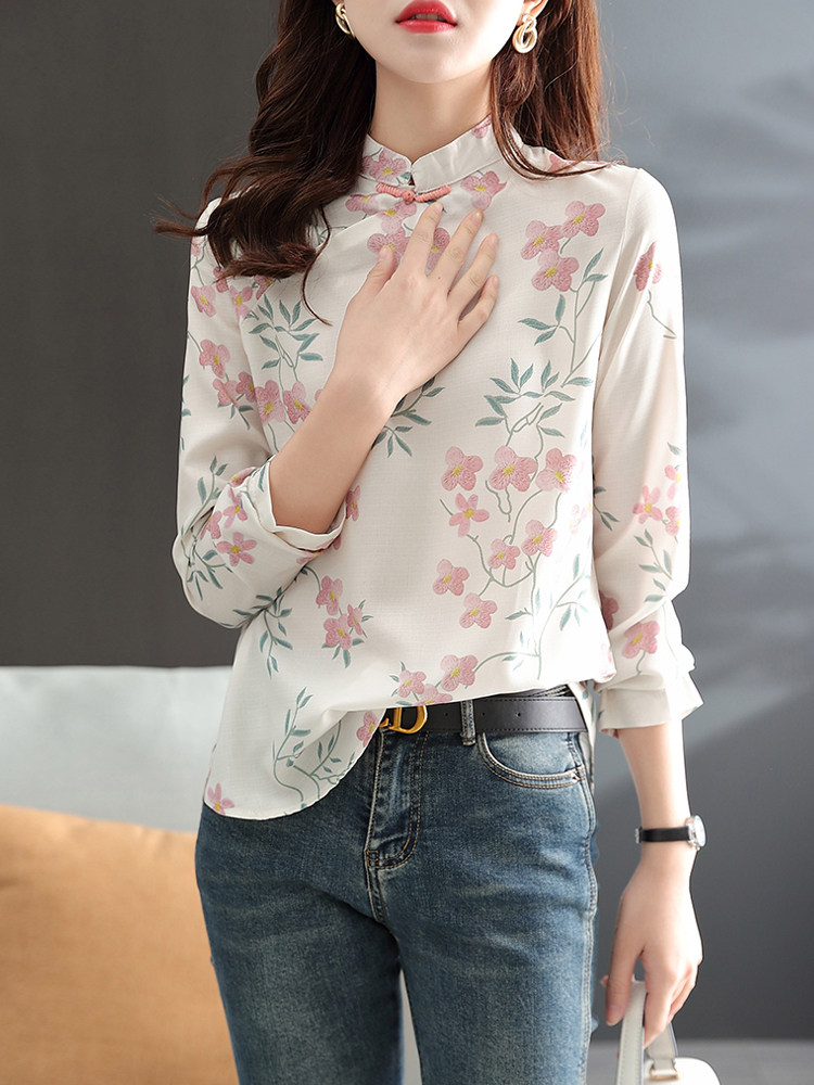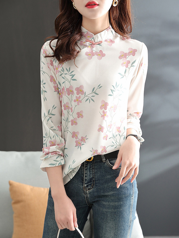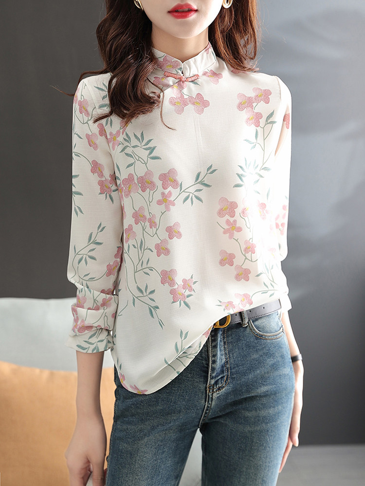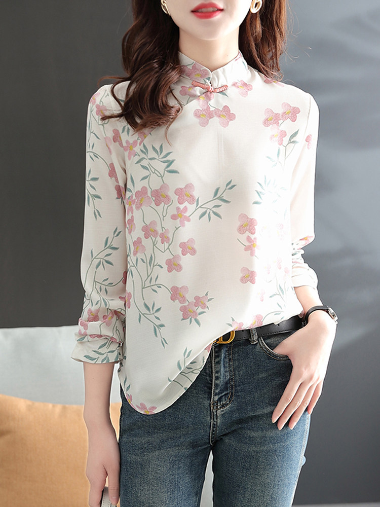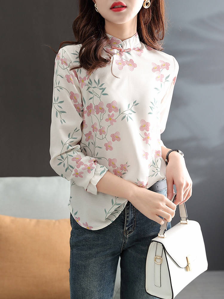 Модное ретро ципао, шифоновый лонгслив, весенняя рубашка, китайский стиль