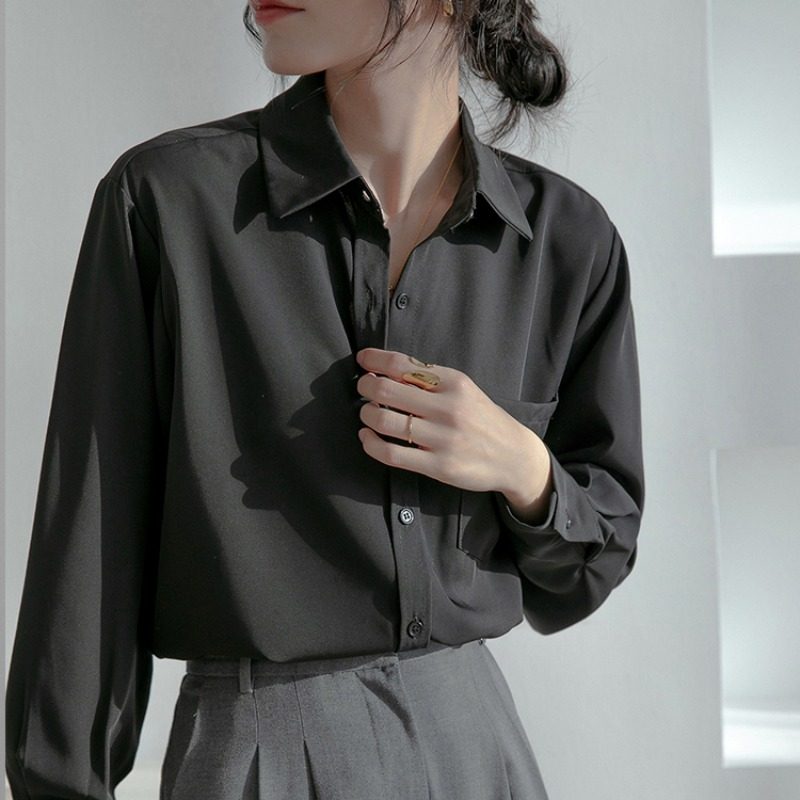 Черная осенняя модная рубашка, дизайнерский пиджак классического кроя, в западном стиле, тренд сезона