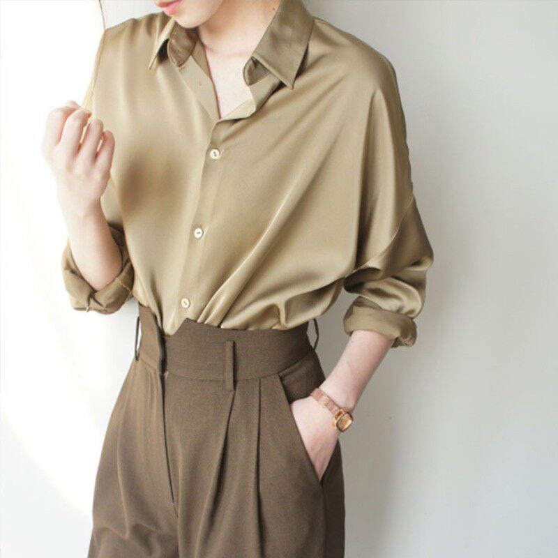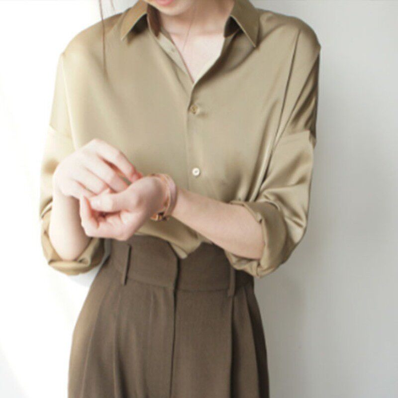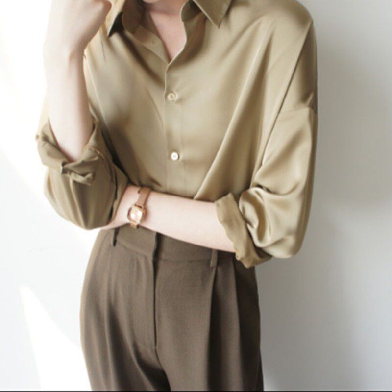 Шелковая осенняя рубашка, шифоновый лонгслив, изысканный стиль, свободный крой