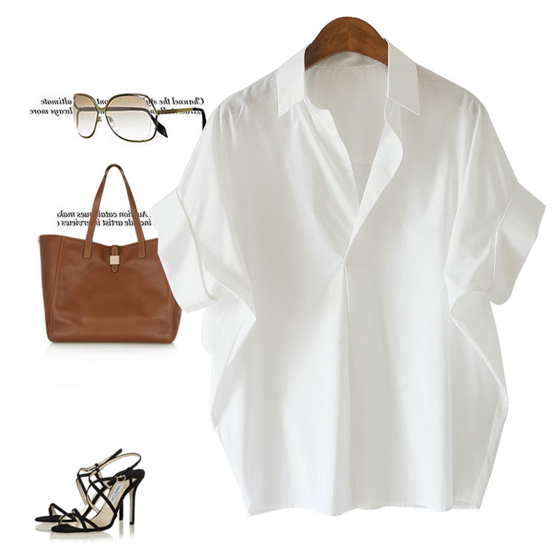 Летняя рубашка для отдыха, в корейском стиле, в западном стиле, оверсайз, V-образный вырез