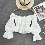 Осенняя рубашка, приталенный короткий корсет, открытые плечи, в западном стиле