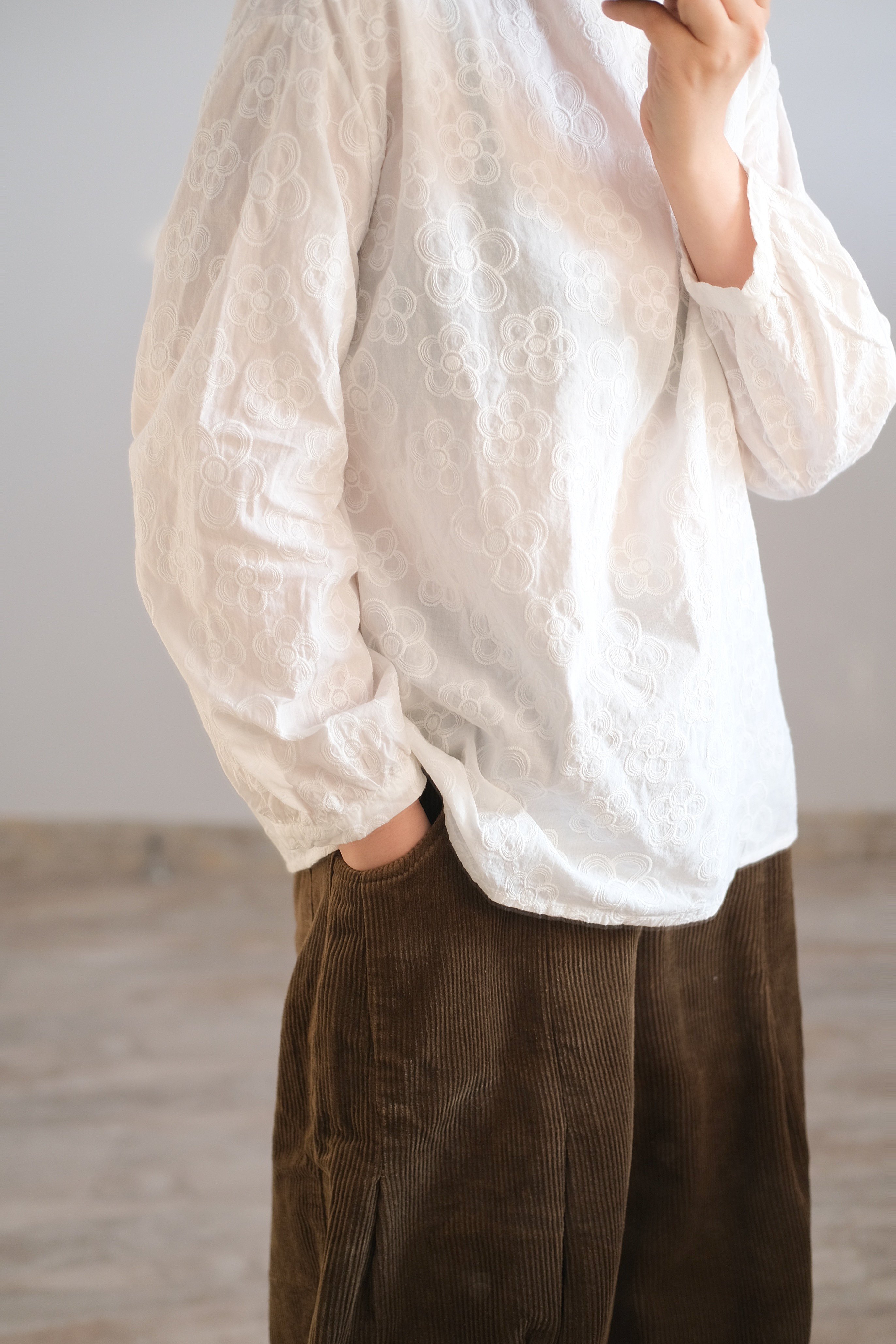 Милая трехмерная осенняя хлопковая рубашка в форме цветка, с вышивкой, оверсайз
