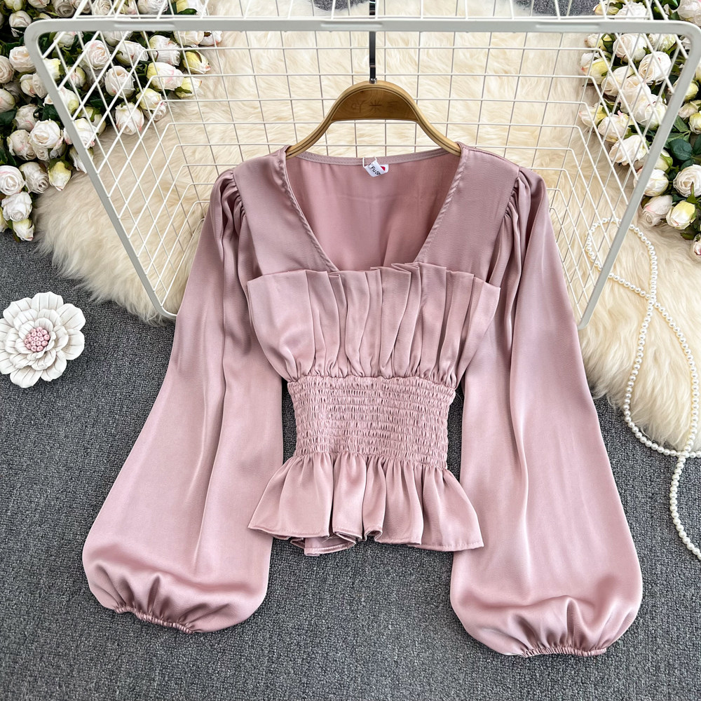 Осенняя ретро дизайнерская рубашка, короткий корсет, французский стиль, квадратный вырез, тренд сезона, в западном стиле, рукава фонарики