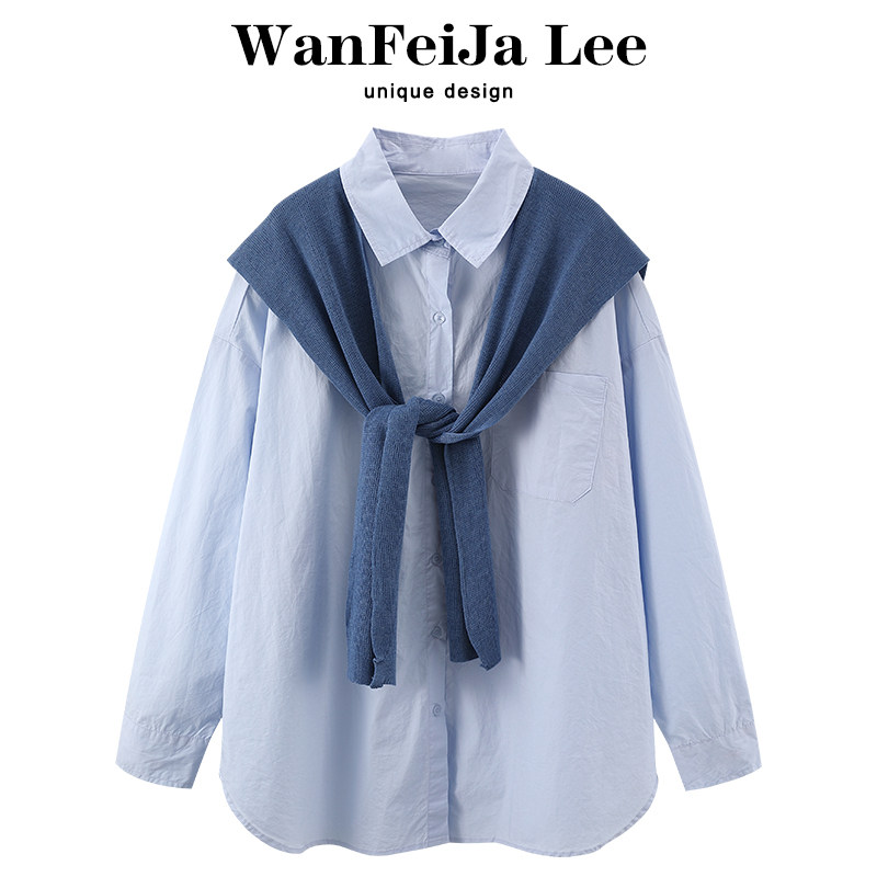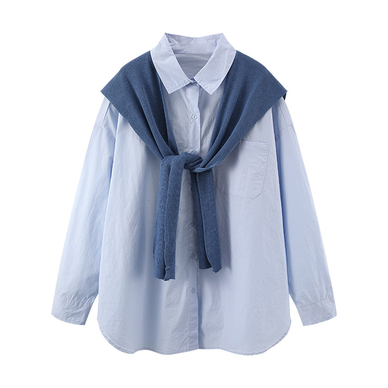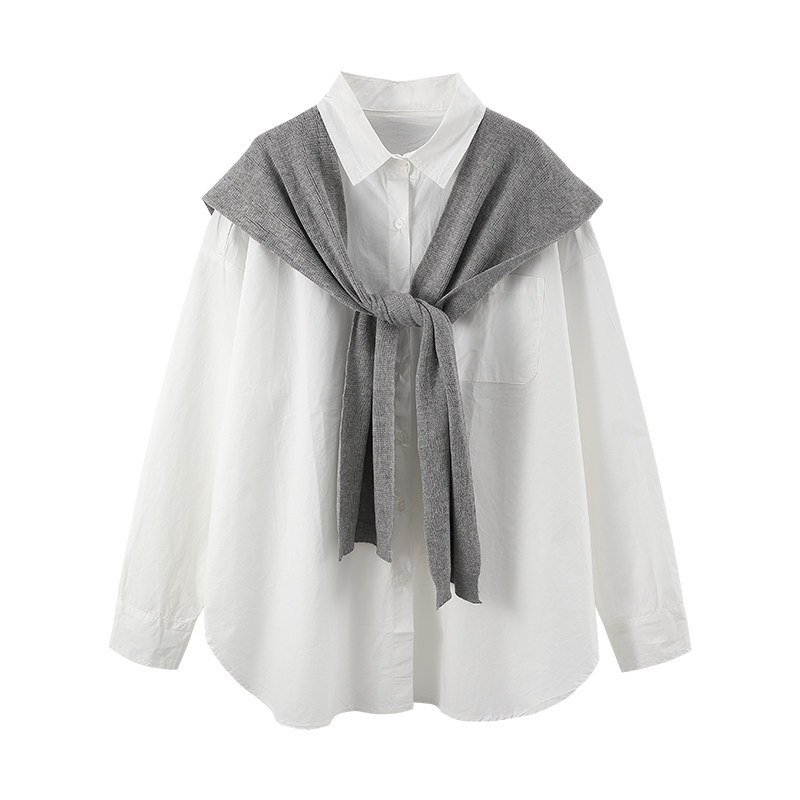 Трикотажная накидка, рубашка, лонгслив, нарукавники, комплект, оверсайз, изысканный стиль