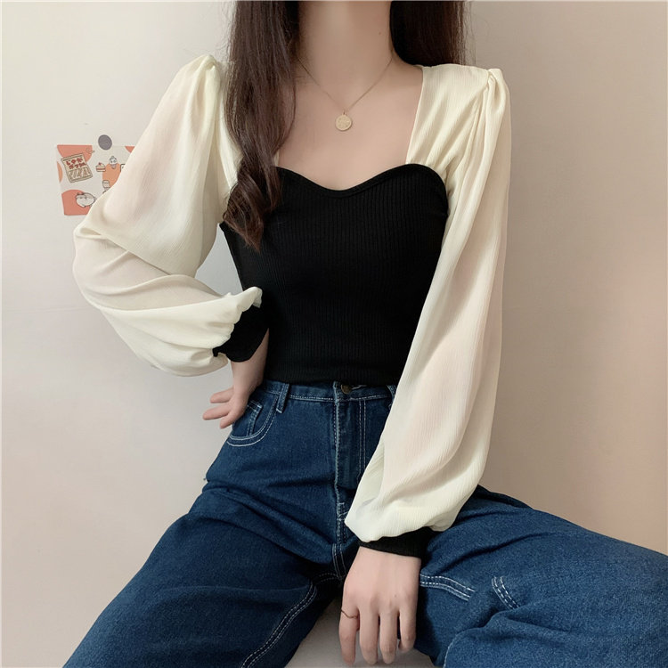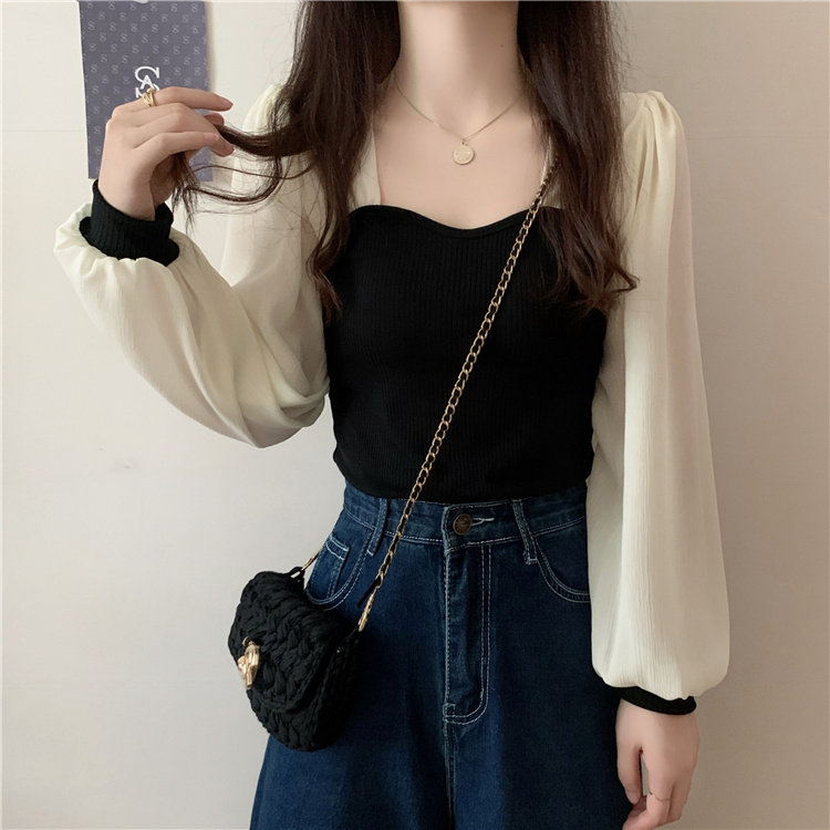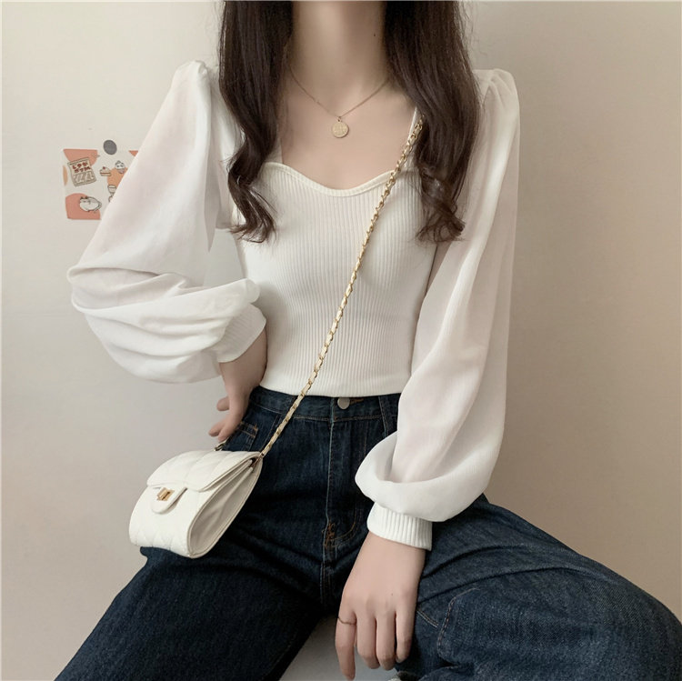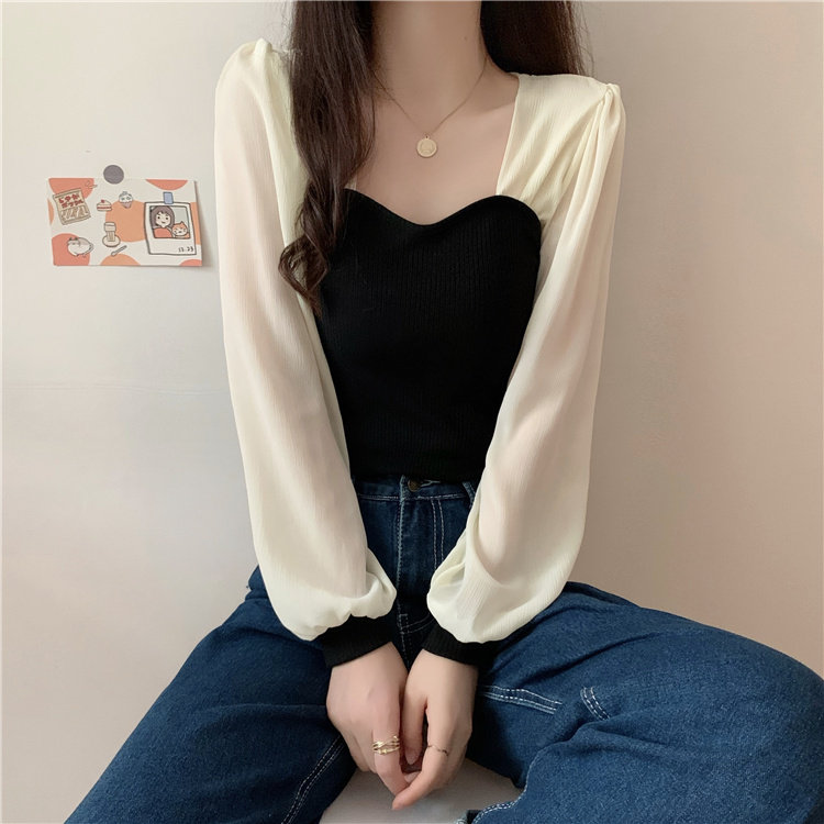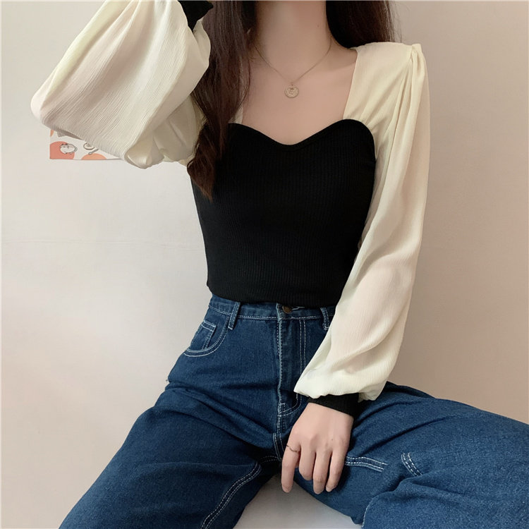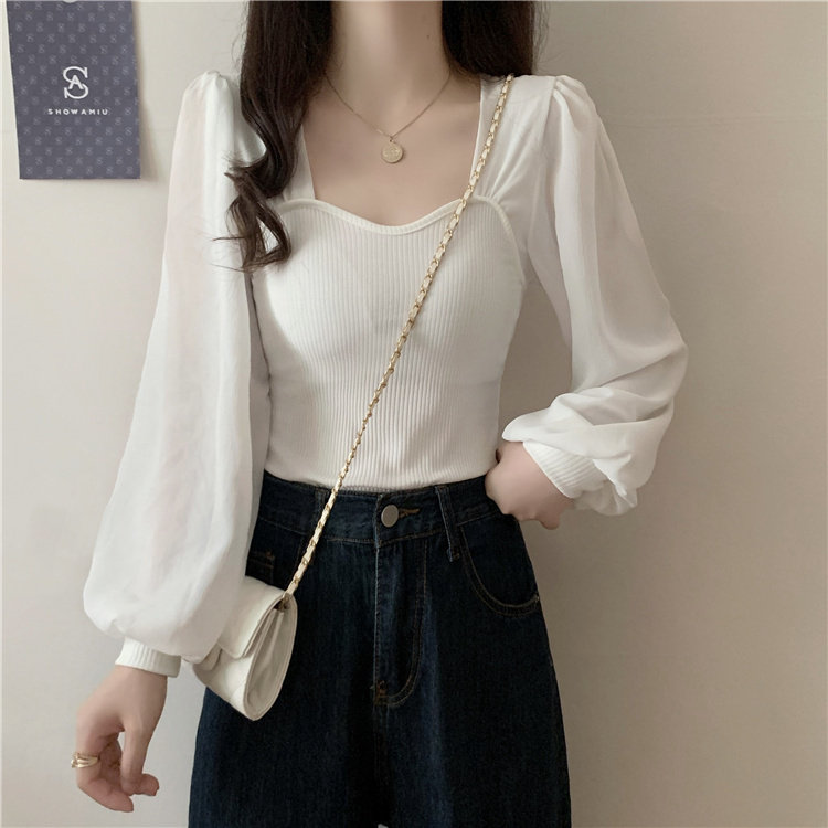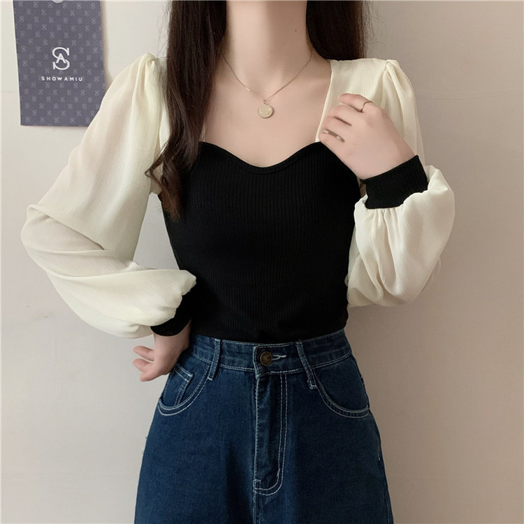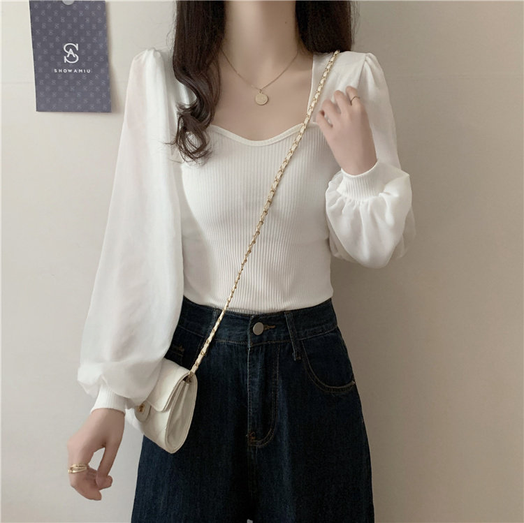 Дизайнерский весенний трикотажный свитер, французский стиль, квадратный вырез, тренд сезона