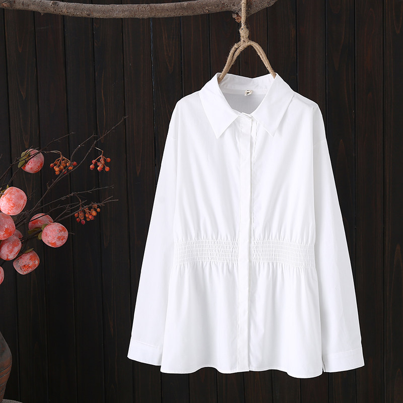 Осенний корсет для отдыха, лонгслив, рубашка, французский стиль, воротник поло, большой размер