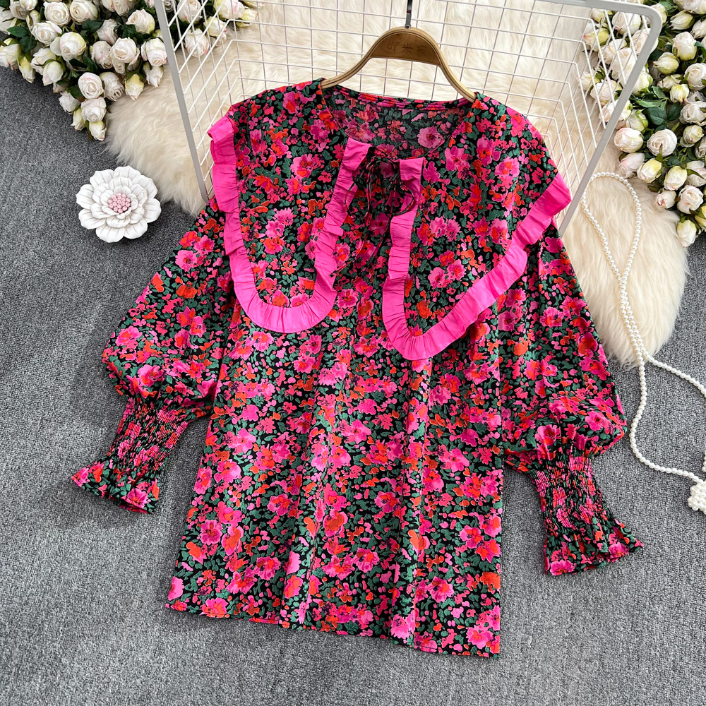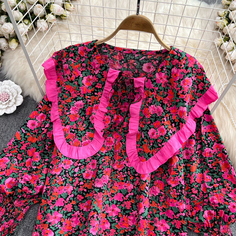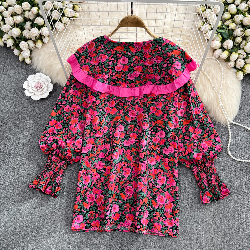 Осенний милый военно-морской лонгслив, рубашка, кукла, в корейском стиле, оверсайз, свободный крой, в западном стиле, кукольный воротник