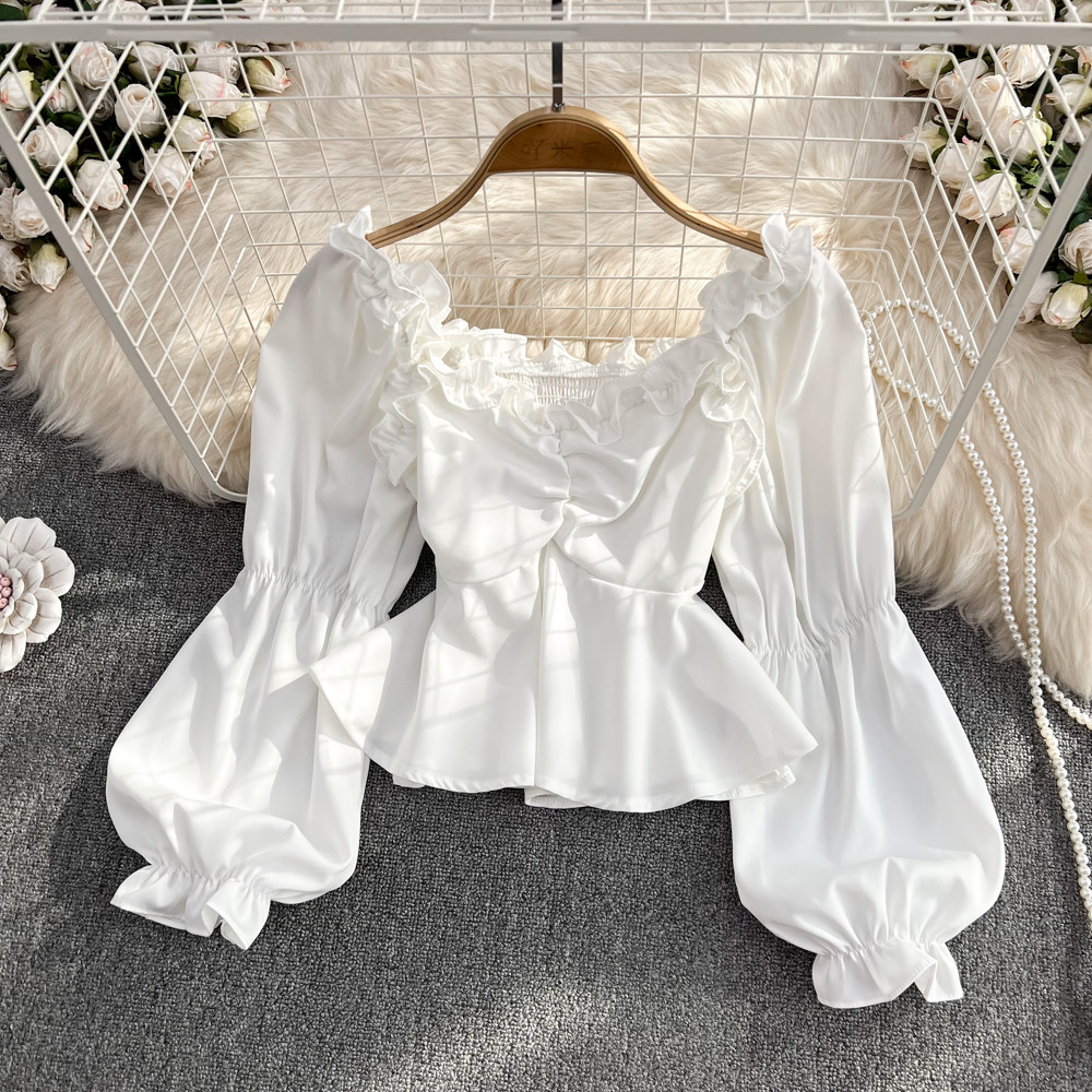 Осенний мегафон, приталенный корсет, короткая рубашка, французский стиль, V-образный вырез, высокая талия