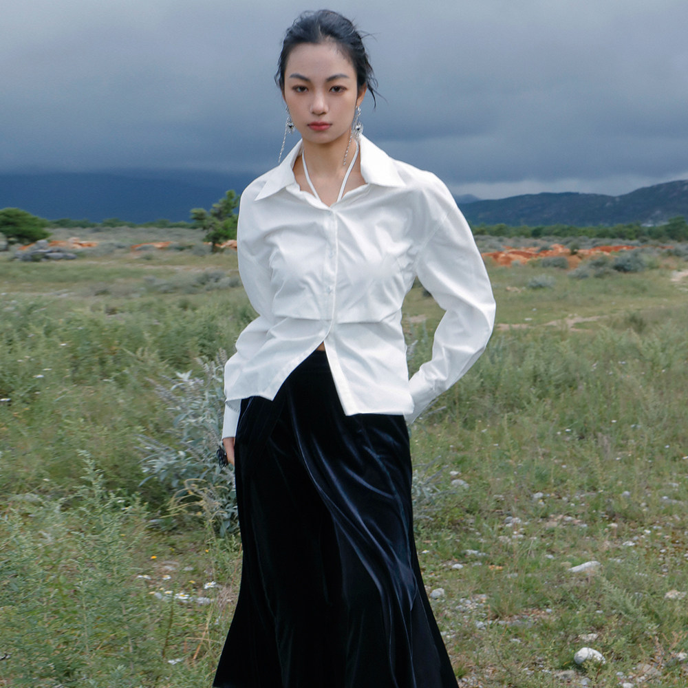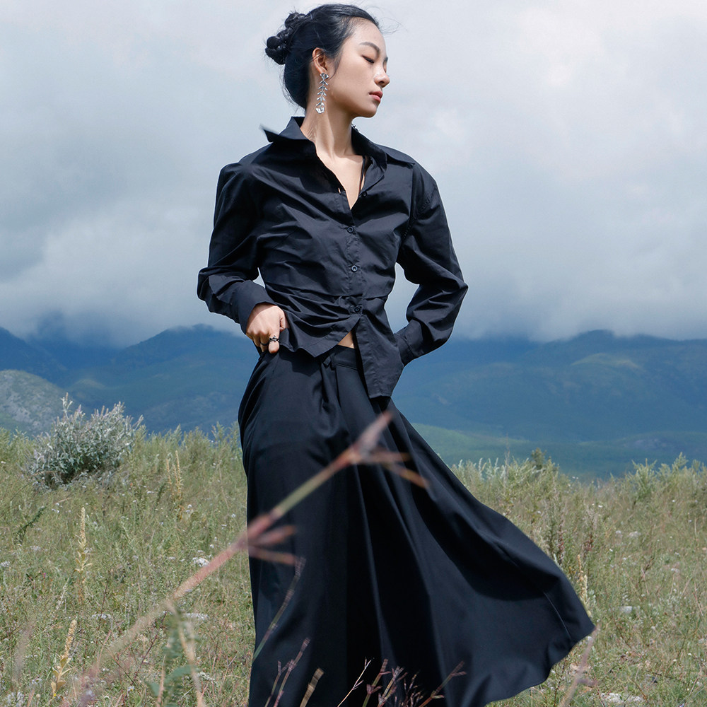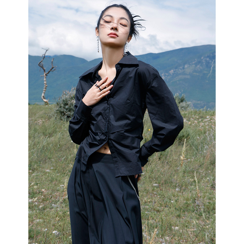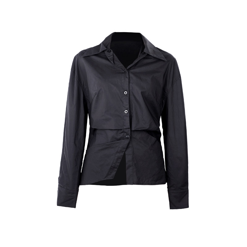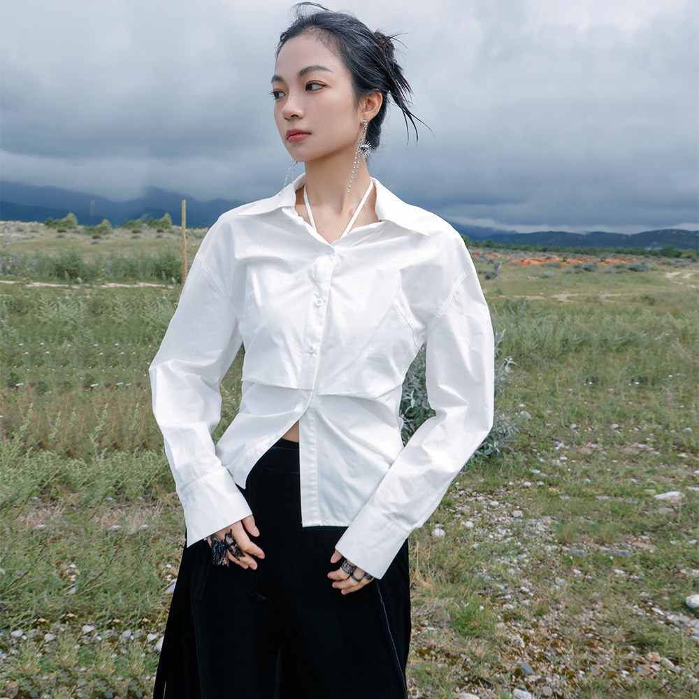 大青龙肆 Небольшая дизайнерская асимметричная осенняя рубашка, тренд сезона, яркий броский стиль