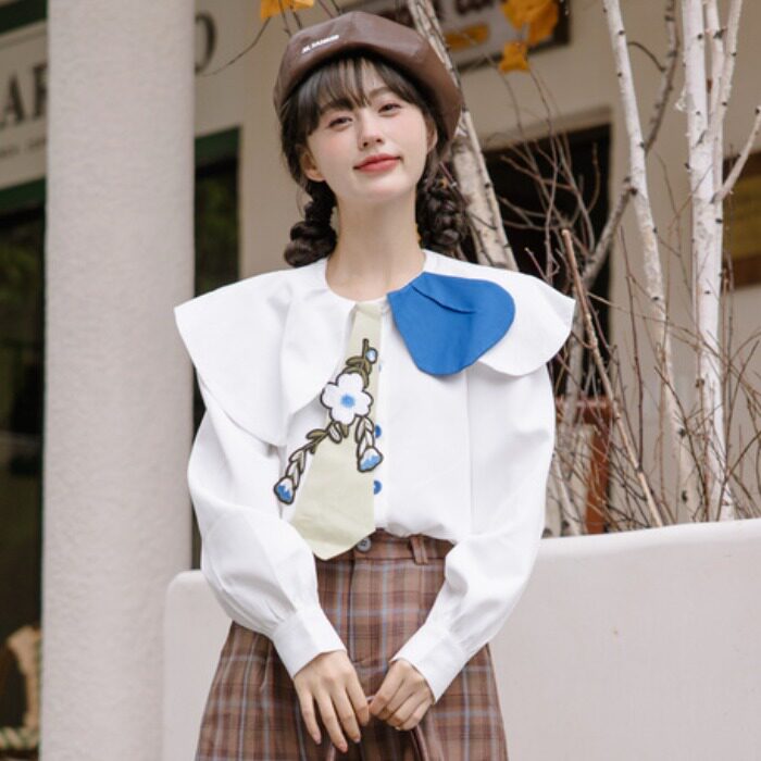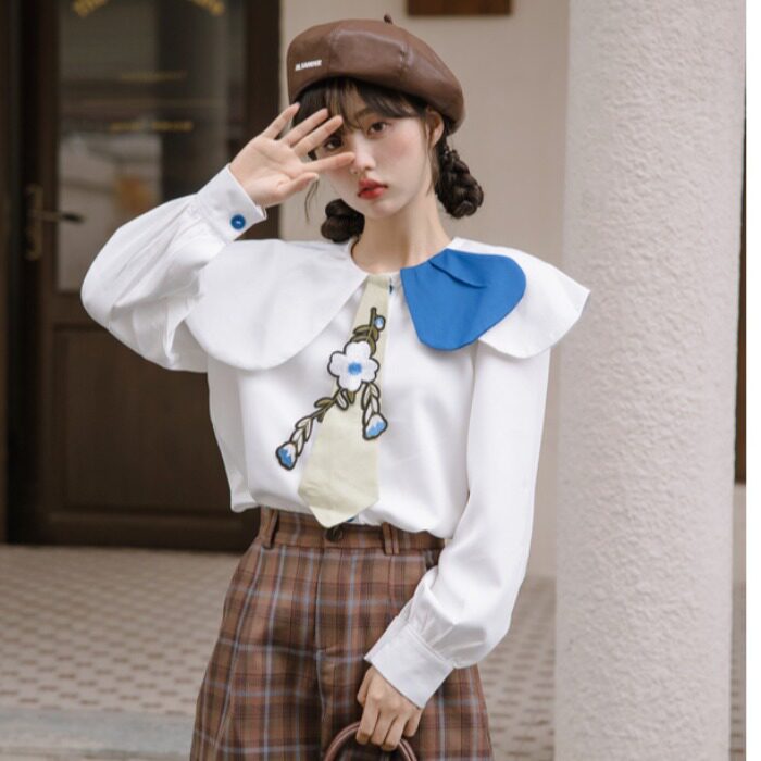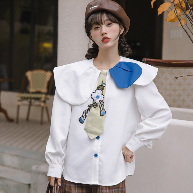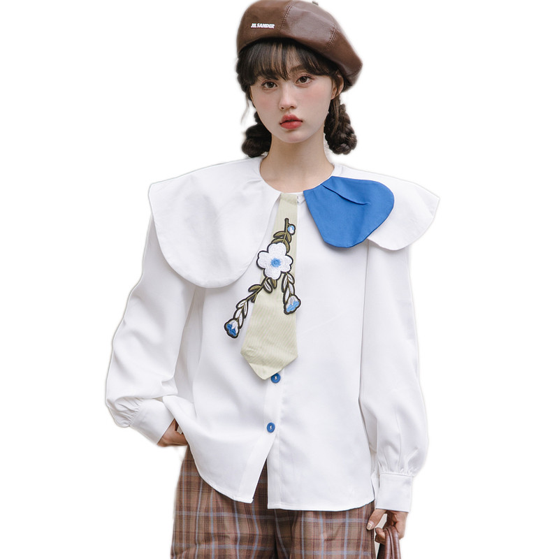 Дизайнерская весенняя рубашка, японский милый галстук, тренд сезона, оверсайз