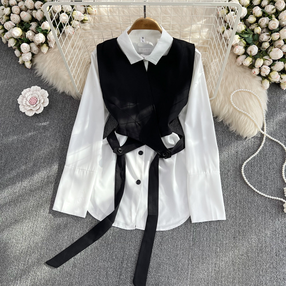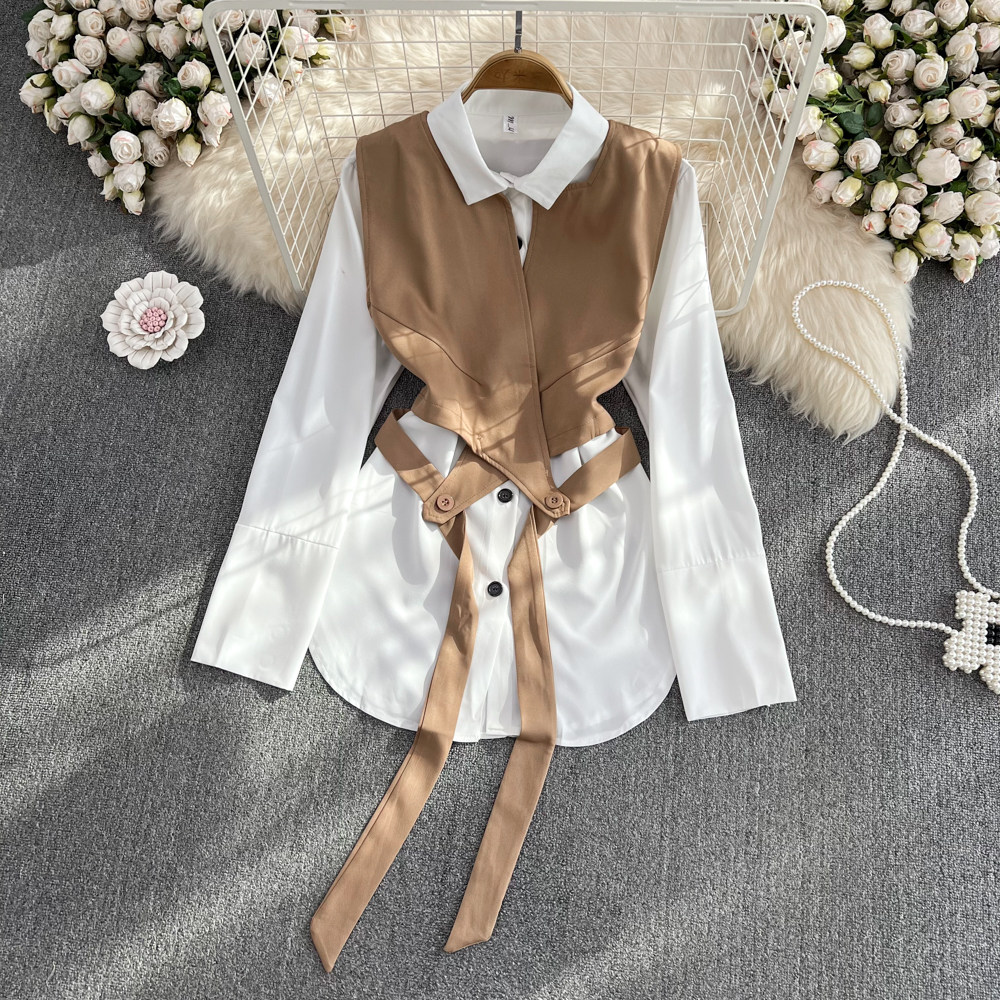 Осенний жилет, куртка, комплект, лонгслив, рубашка, изысканный стиль, яркий броский стиль, свободный крой