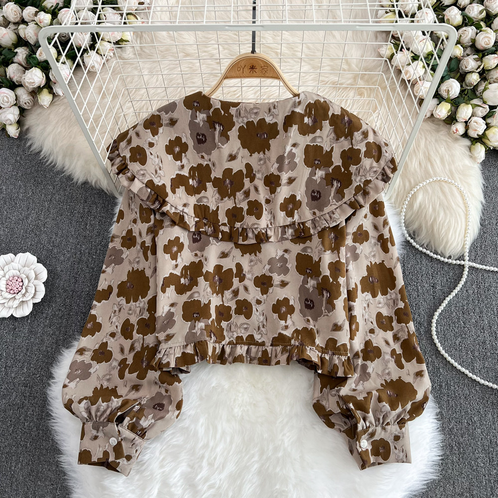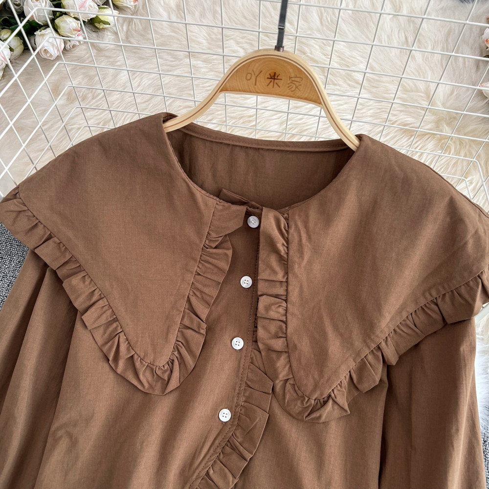 Осенняя модная милая кукла, лонгслив, короткая рубашка, в корейском стиле, кукольный воротник, оверсайз, в западном стиле
