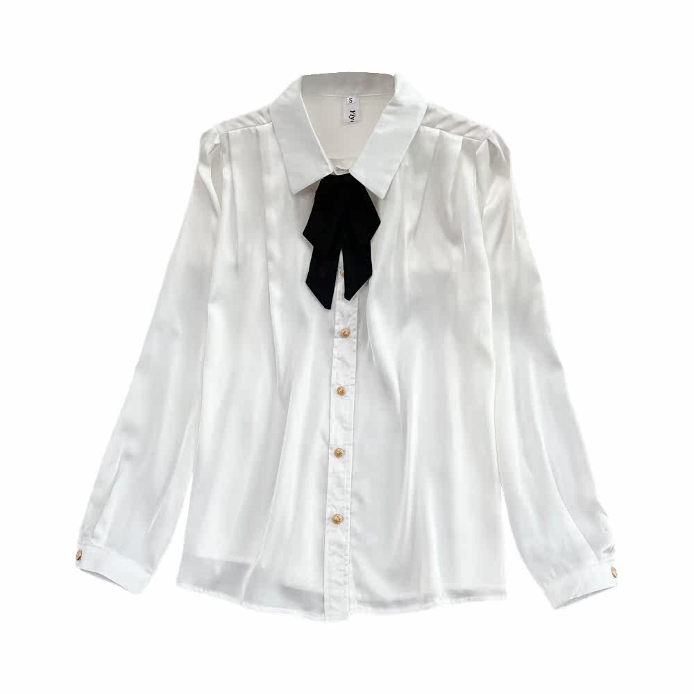 Осенний лонгслив с бантиком, рубашка, свободный крой, в западном стиле