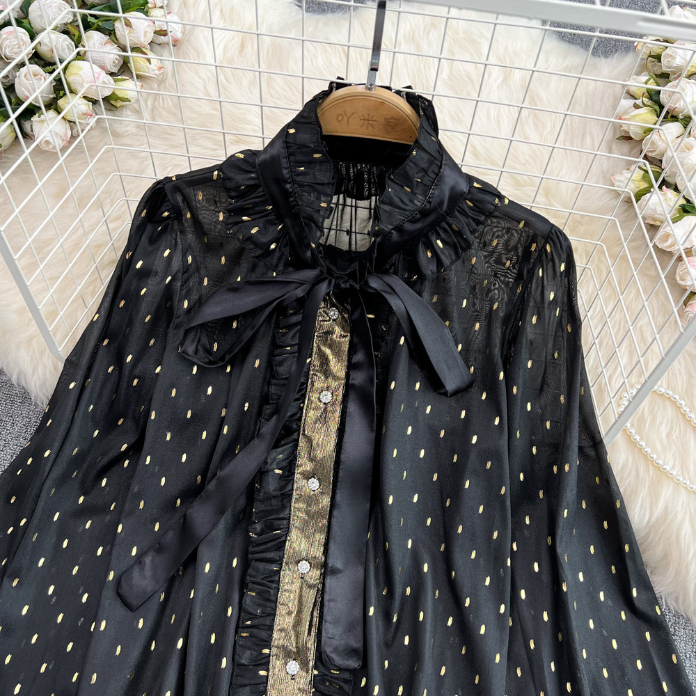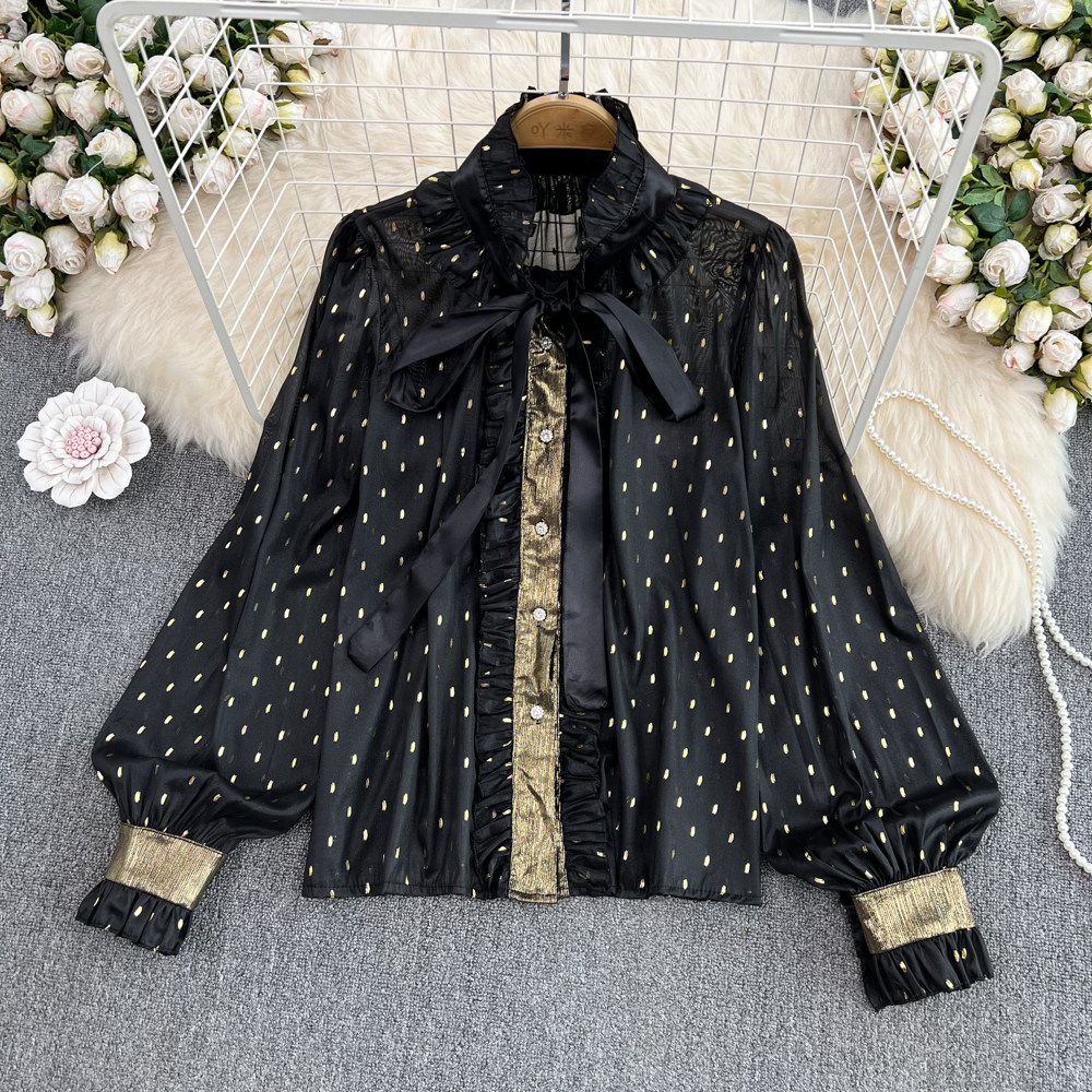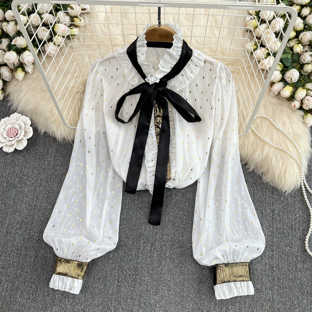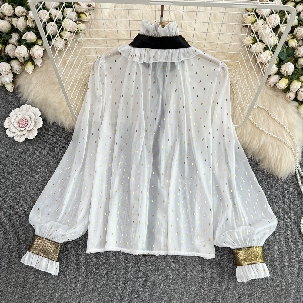 Дизайнерская рубашка, термобелье, французский стиль, тренд сезона, рукава фонарики, свободный крой, в западном стиле