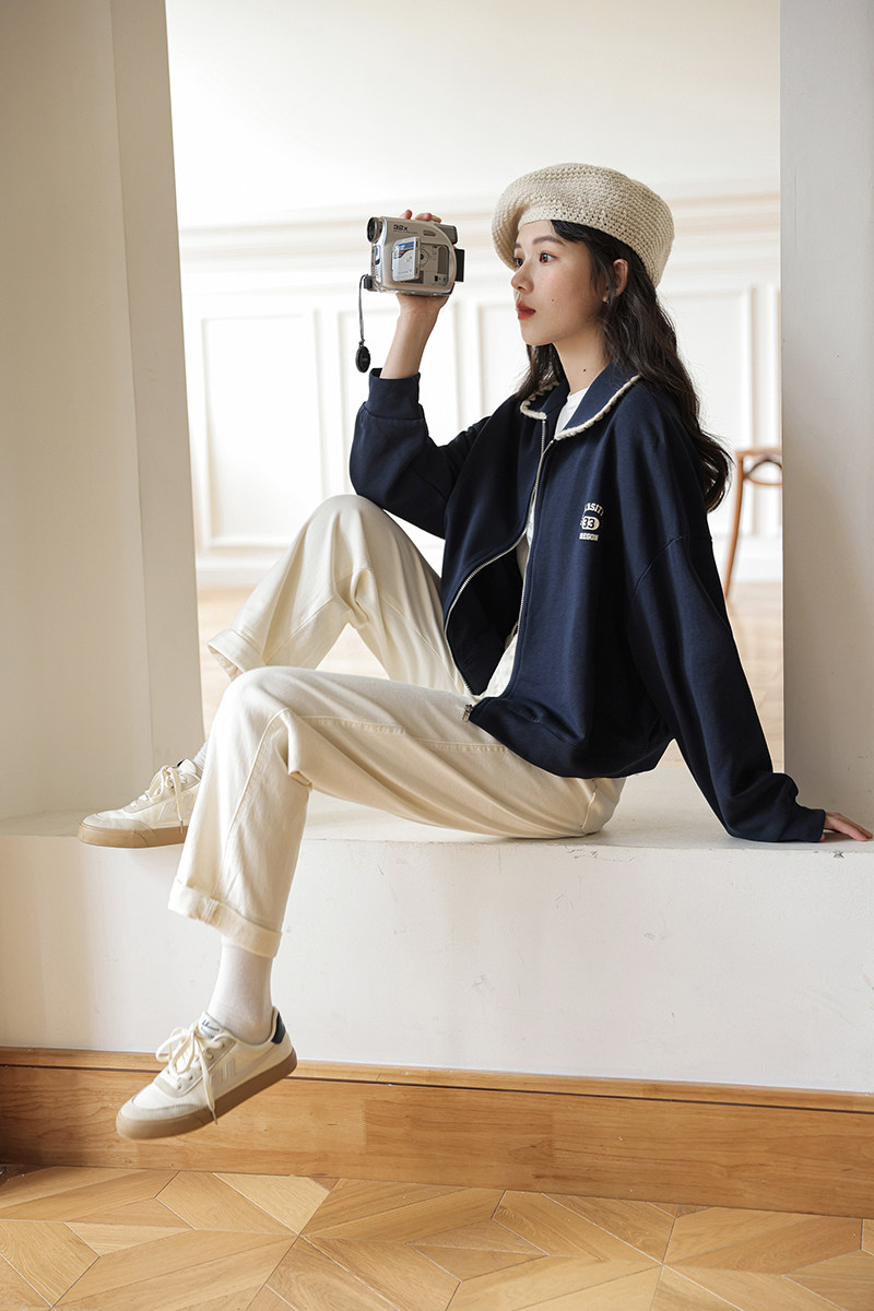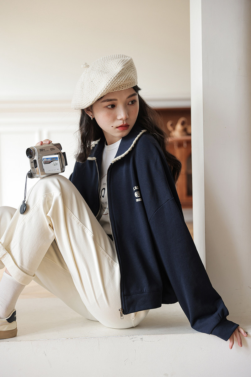 Осенняя дизайнерская толстовка, куртка, кардиган с молнией, лонгслив, тренд сезона, в корейском стиле