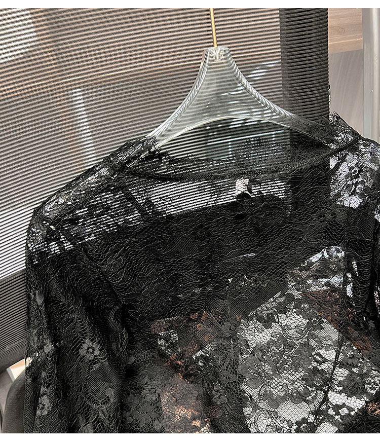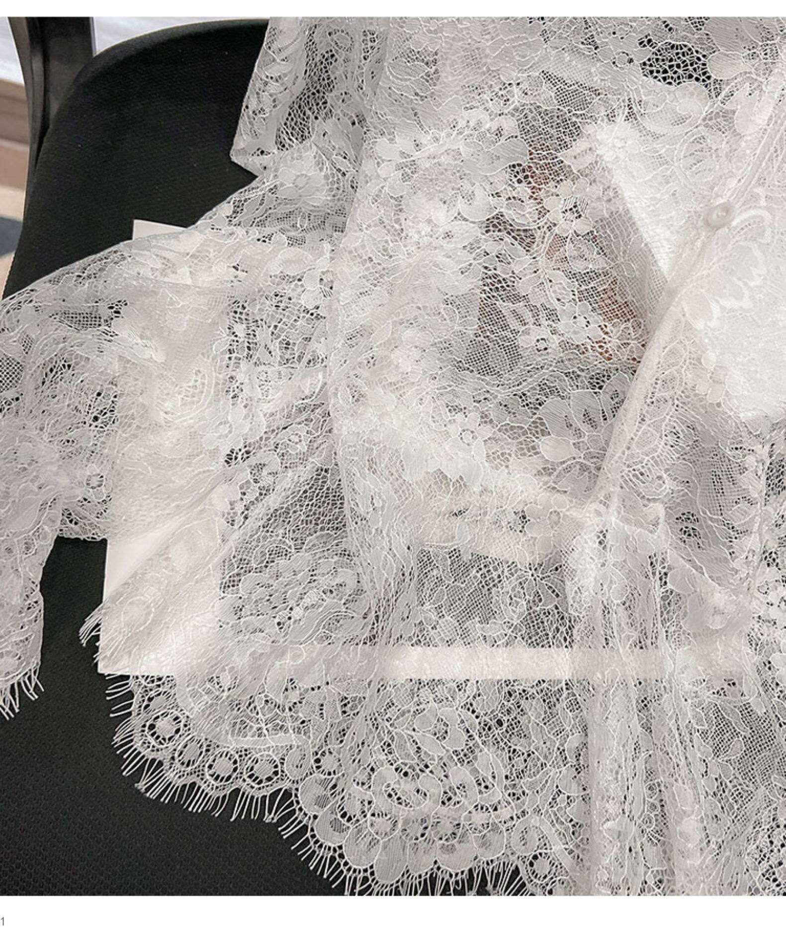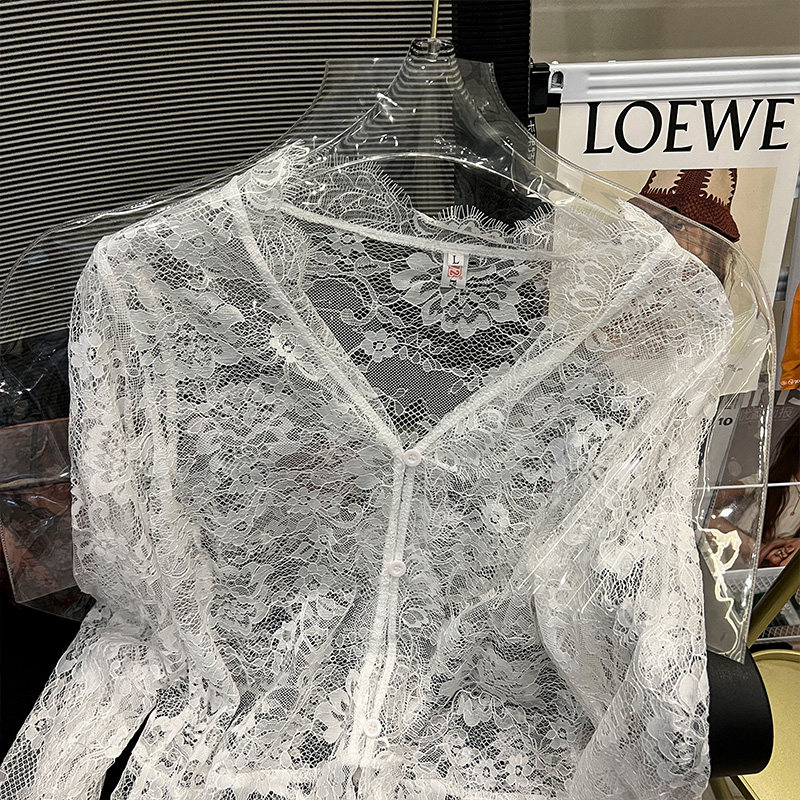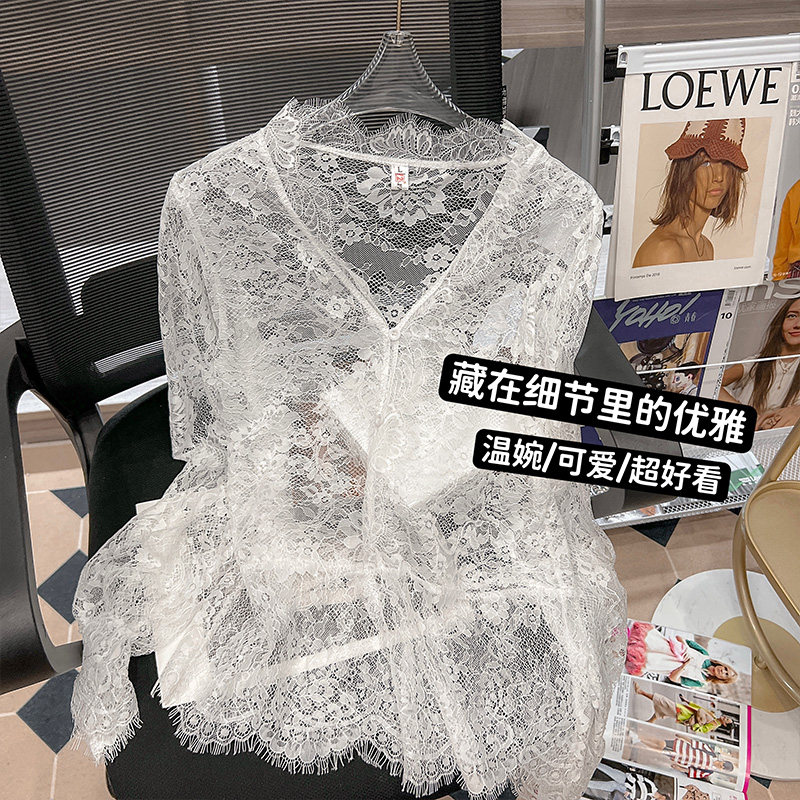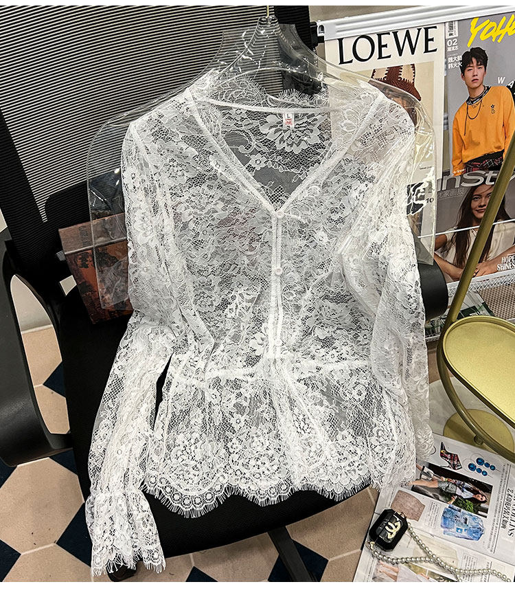 Кружевной шелковый приятный телу осенний сексуальный лонгслив, французский стиль, V-образный вырез