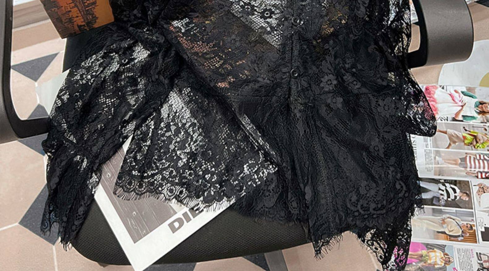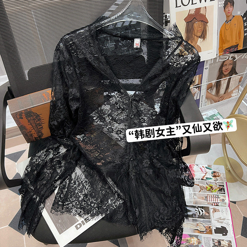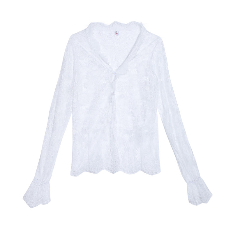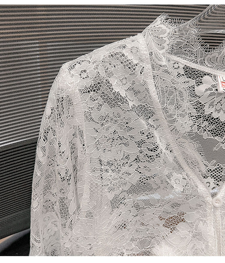 Кружевной шелковый приятный телу осенний сексуальный лонгслив, французский стиль, V-образный вырез