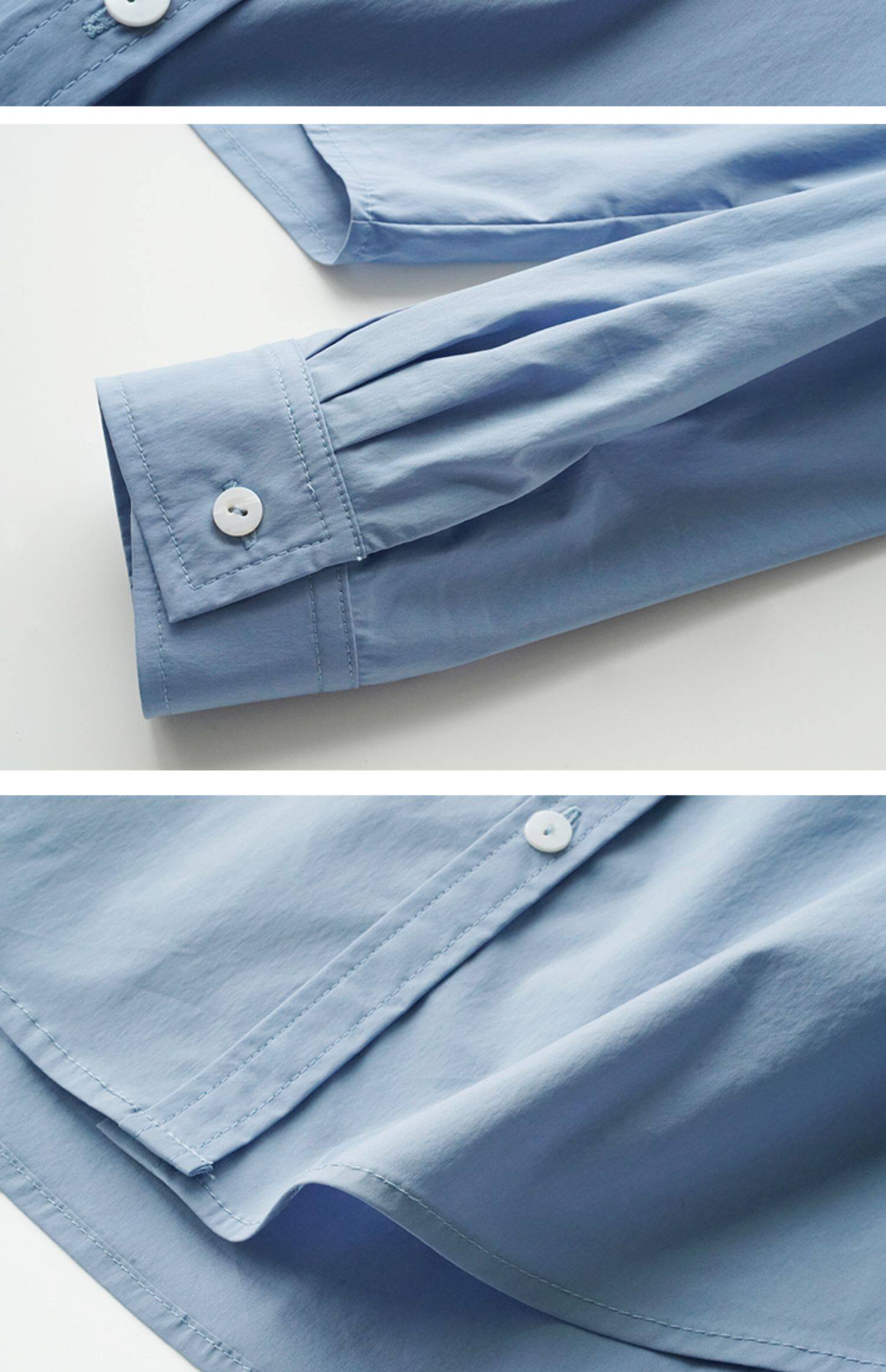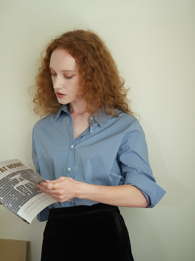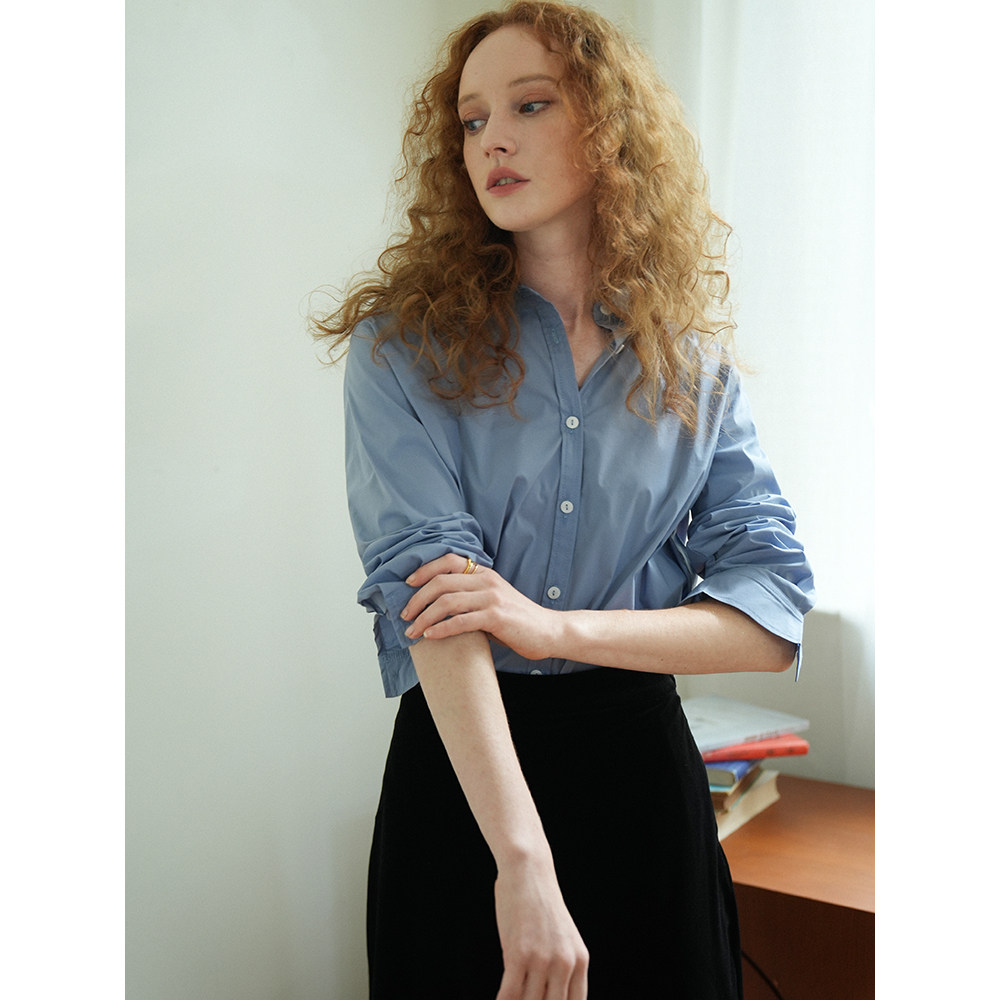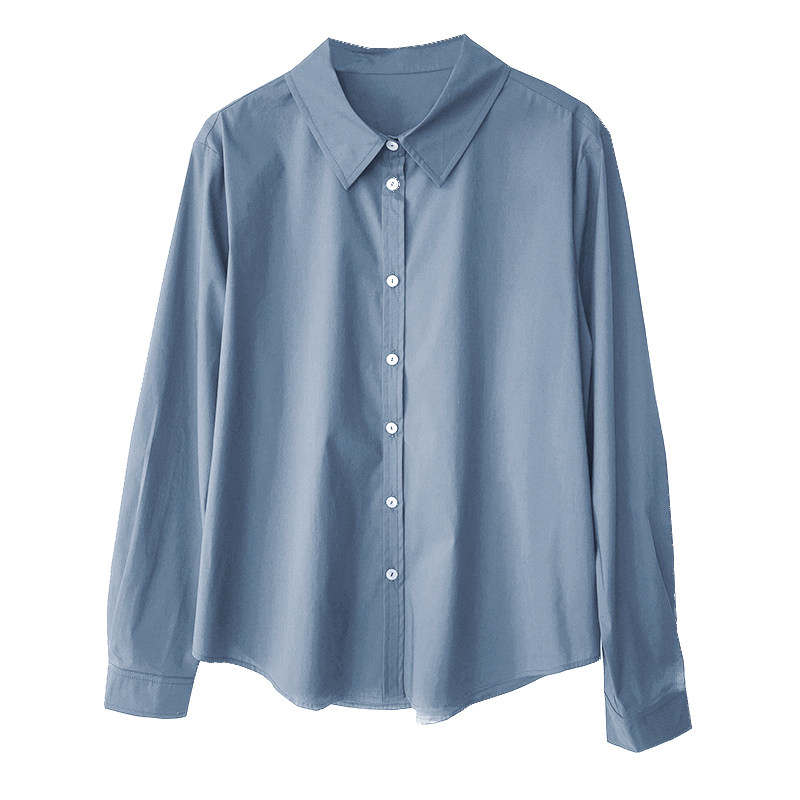 Синий лонгслив, весенняя рубашка, свободный крой, в корейском стиле