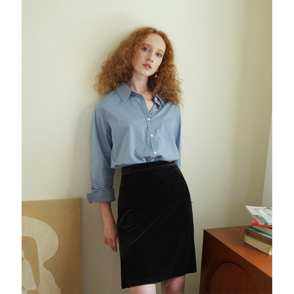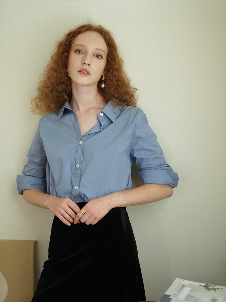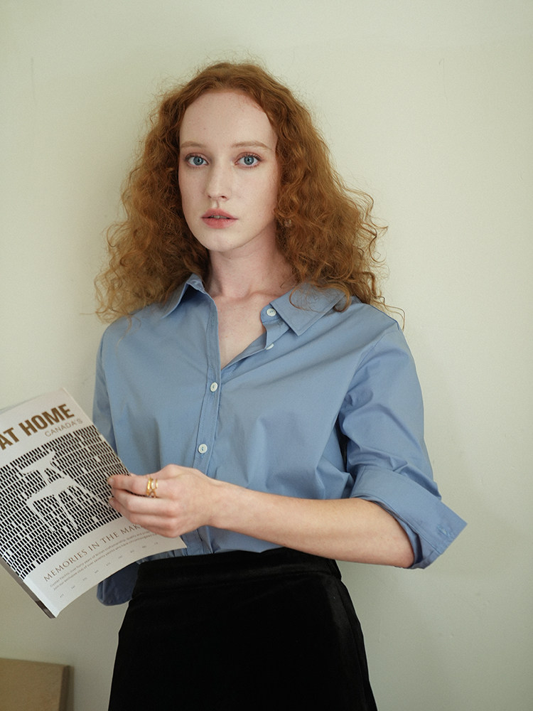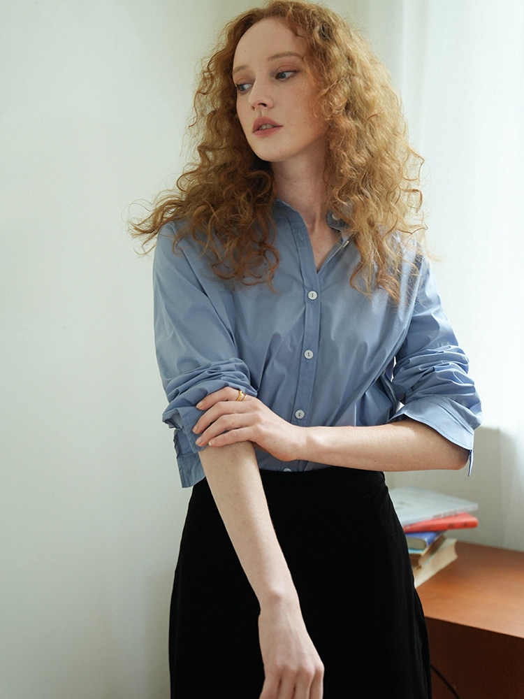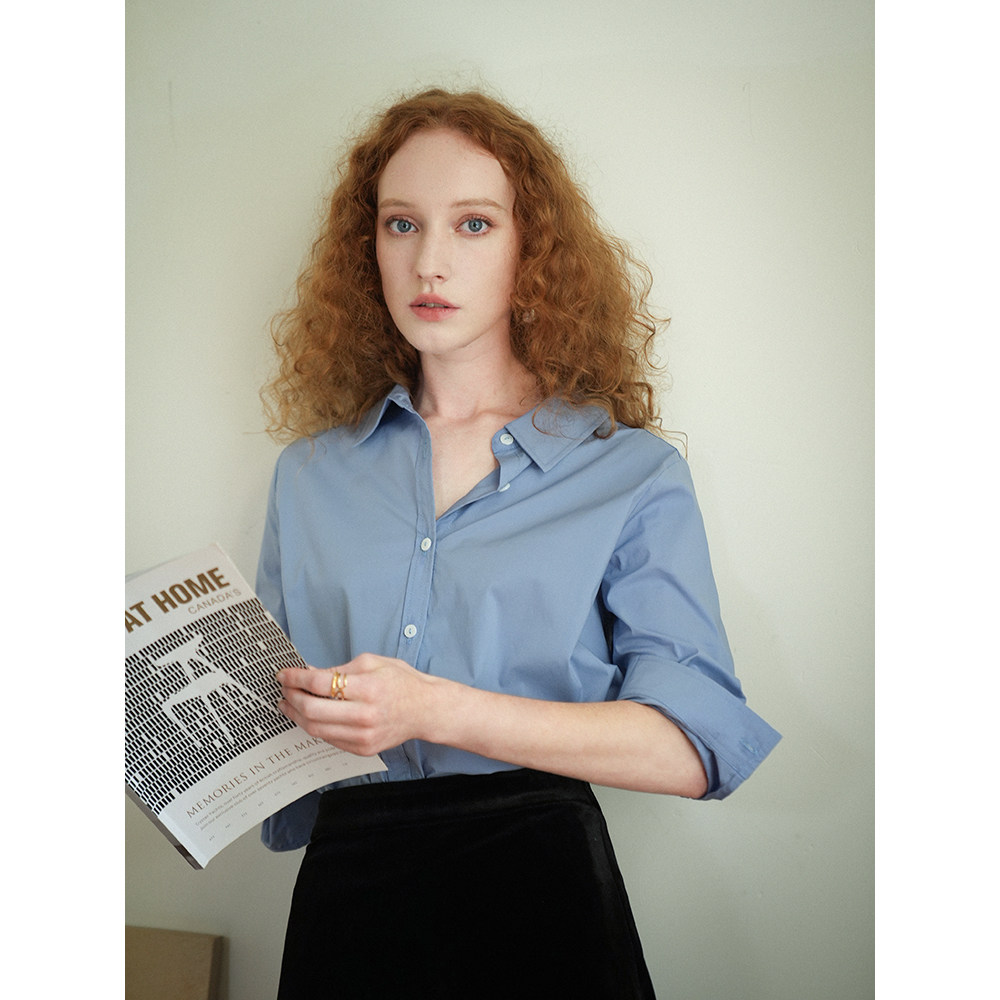 Синий лонгслив, весенняя рубашка, свободный крой, в корейском стиле