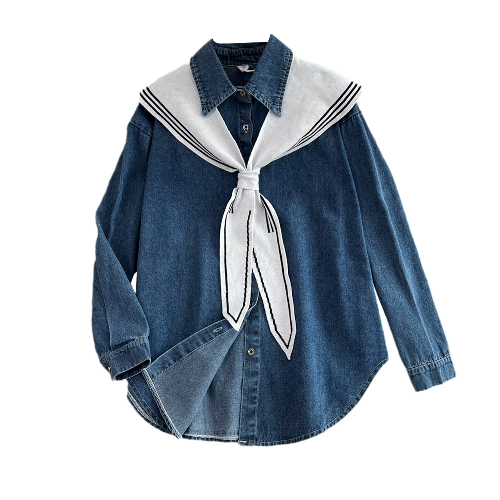 Осенний ретро милый комплект, накидка, лонгслив, рубашка, воротник поло, свободный крой