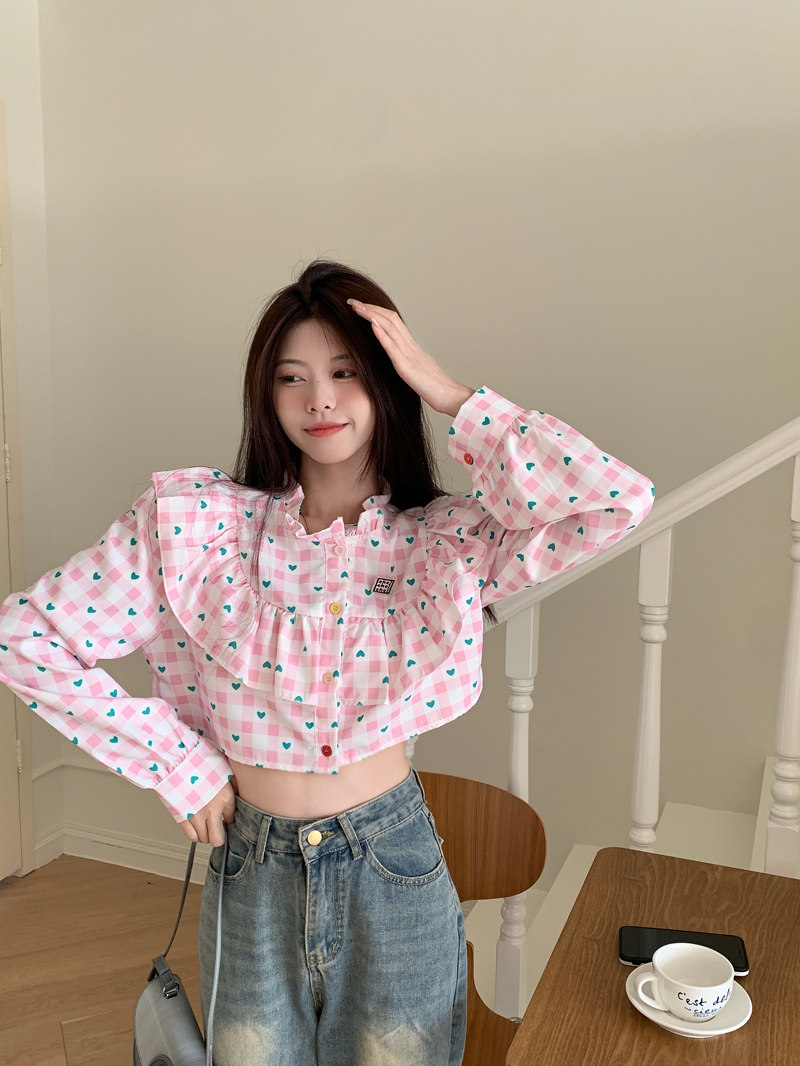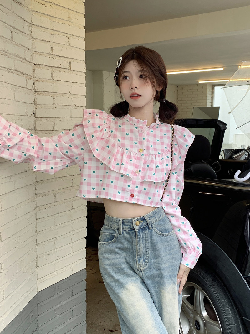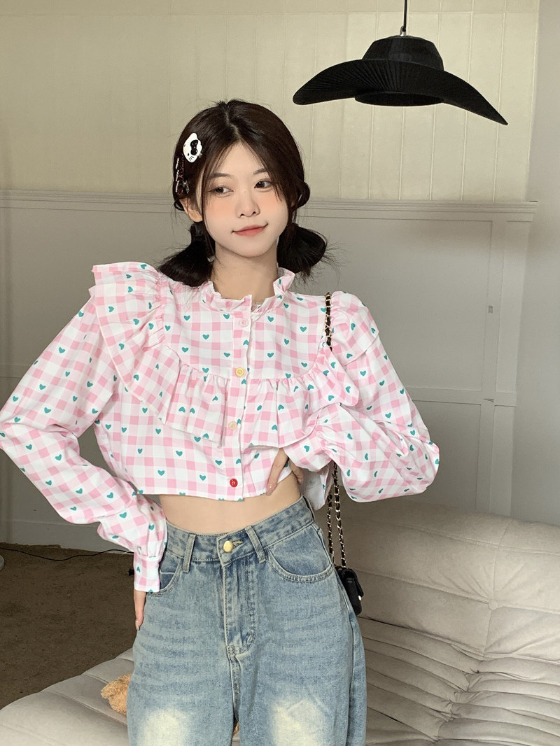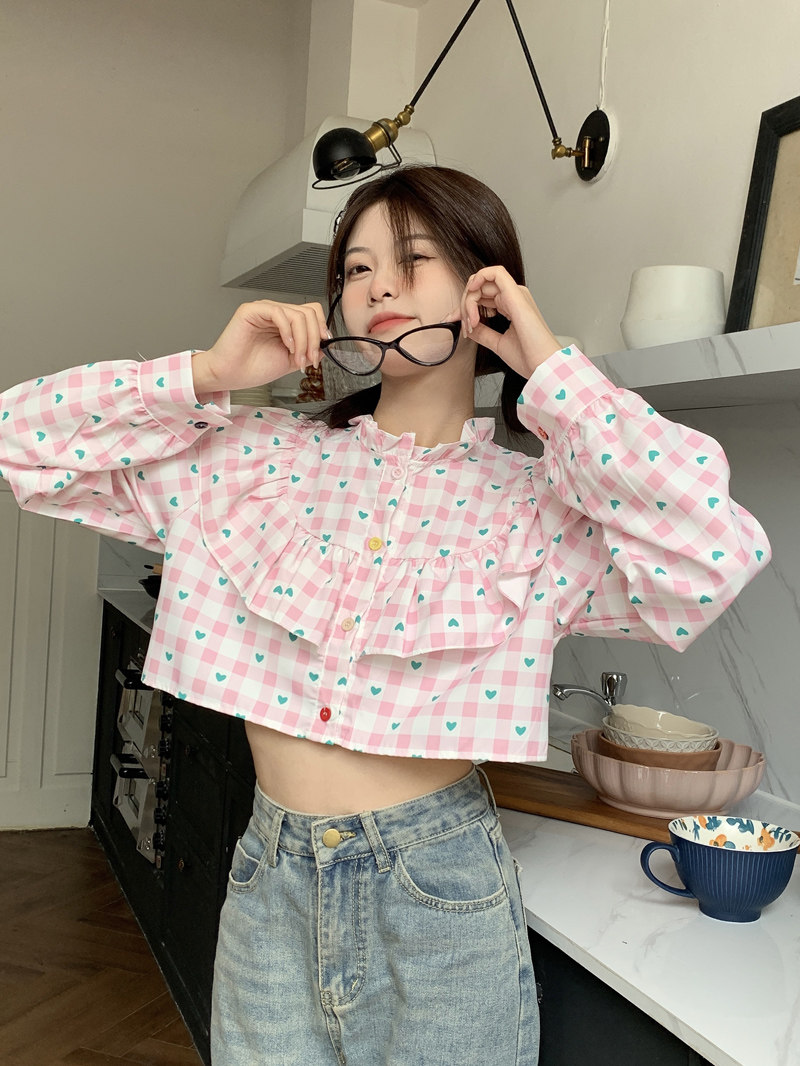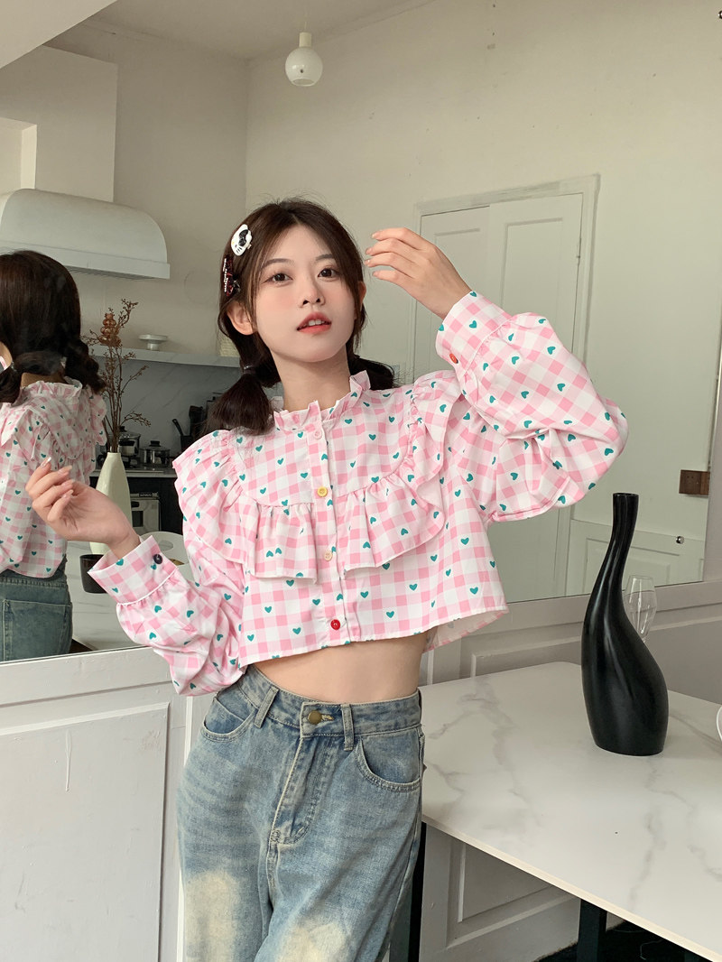 Короткая дизайнерская рубашка с круглым воротником, тренд сезона, подходит для подростков