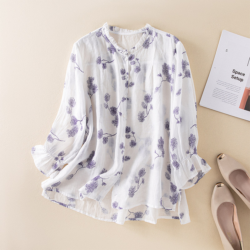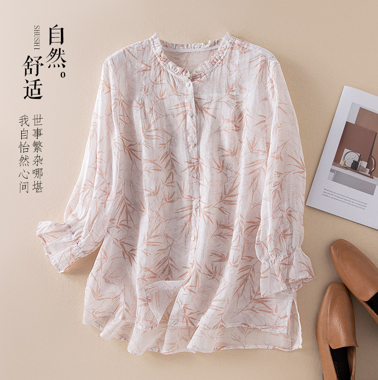 (Трансграничная торговля), японская рубашка, из хлопка и льна, яркий броский стиль