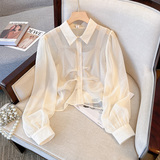 Дизайнерская весенняя рубашка, лонгслив, большой размер, свободный крой, тренд сезона, по фигуре, воротник поло