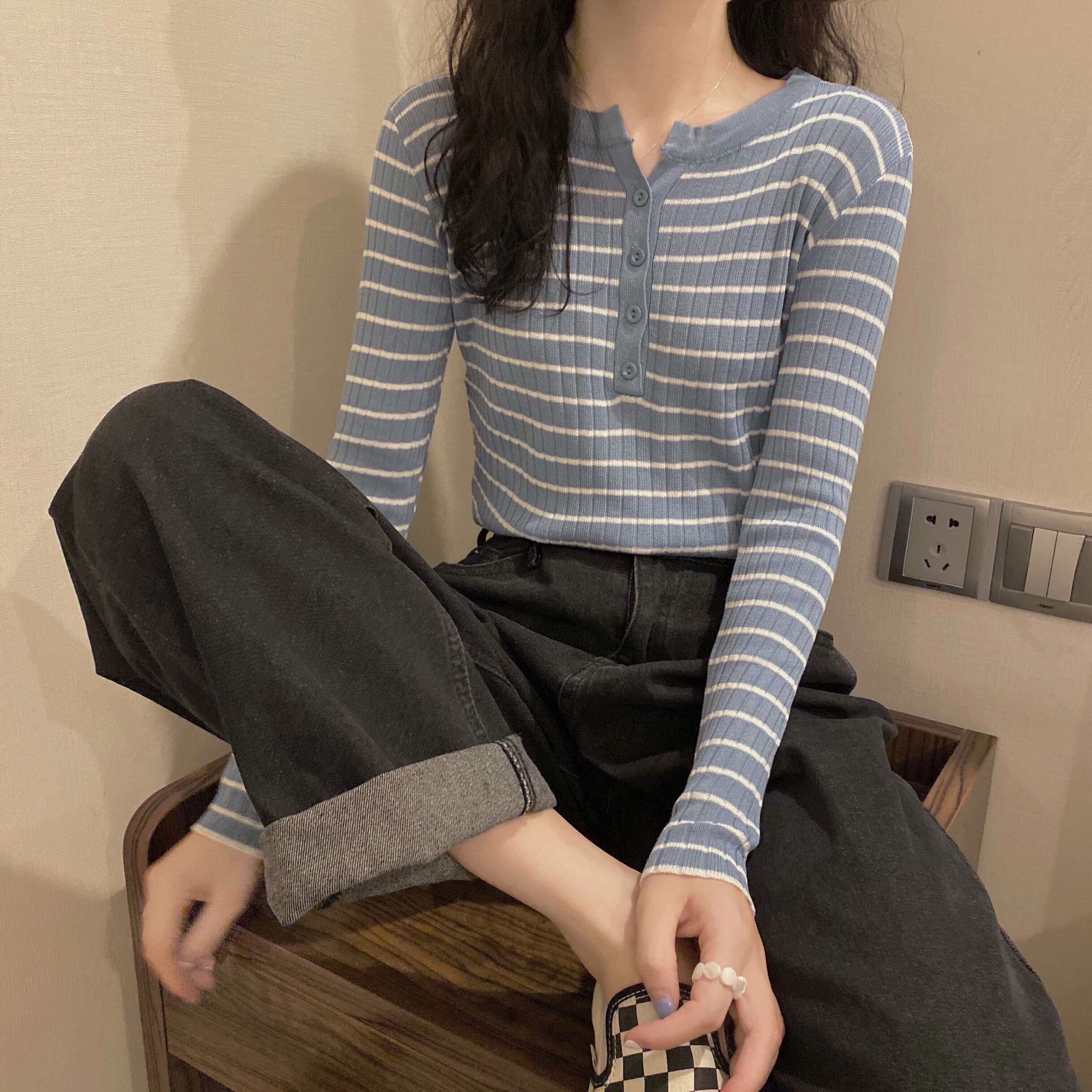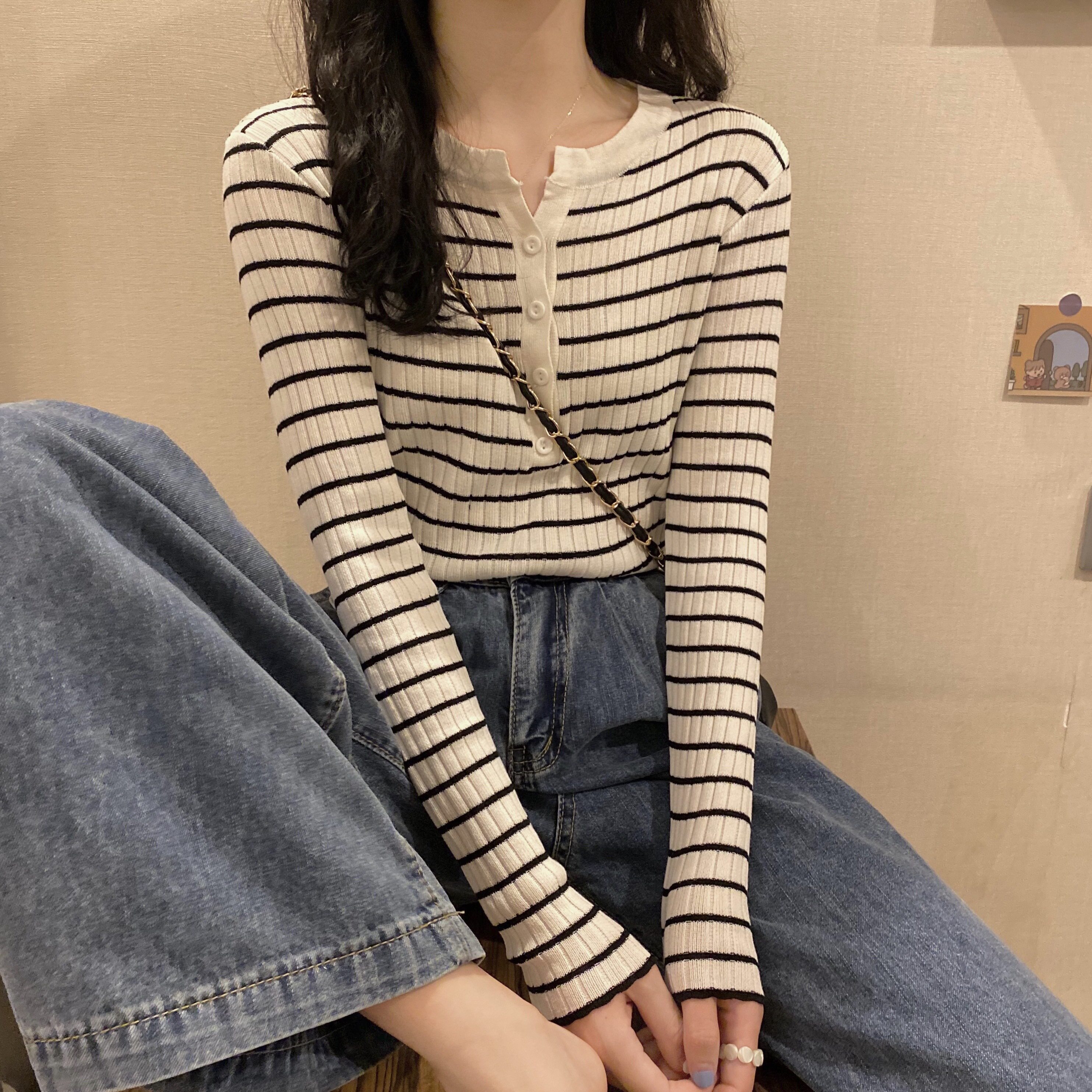 Демисезонный трикотажный приятный телу весенний приталенный короткий лонгслив, в западном стиле
