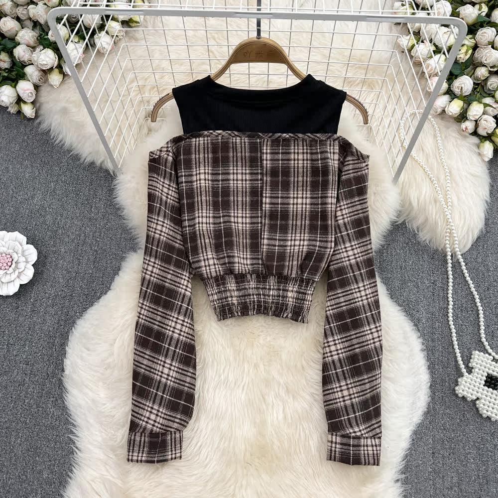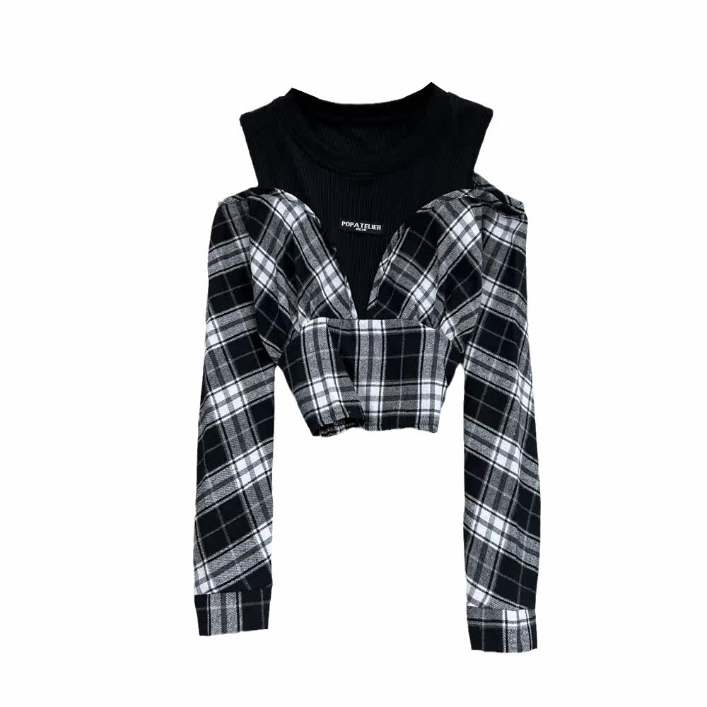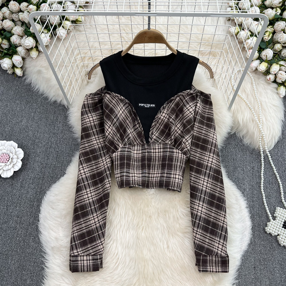 Осенний комплект с круглым воротником, короткая рубашка, французский стиль, в западном стиле, облегающий крой
