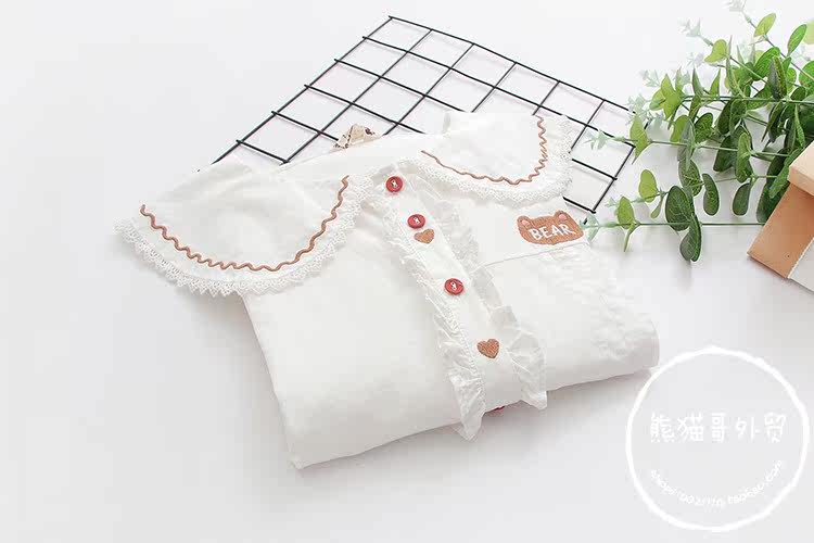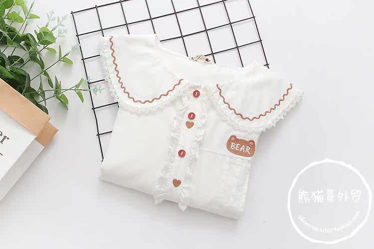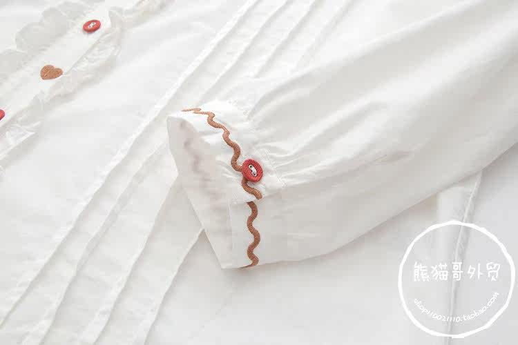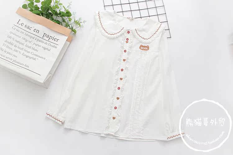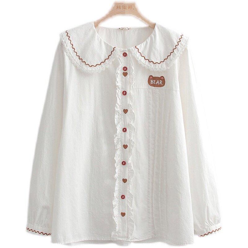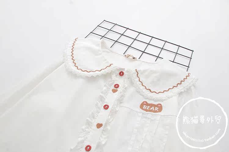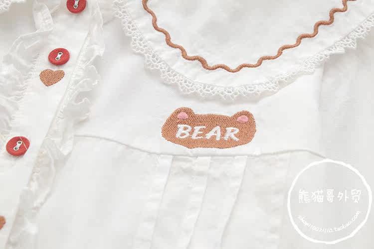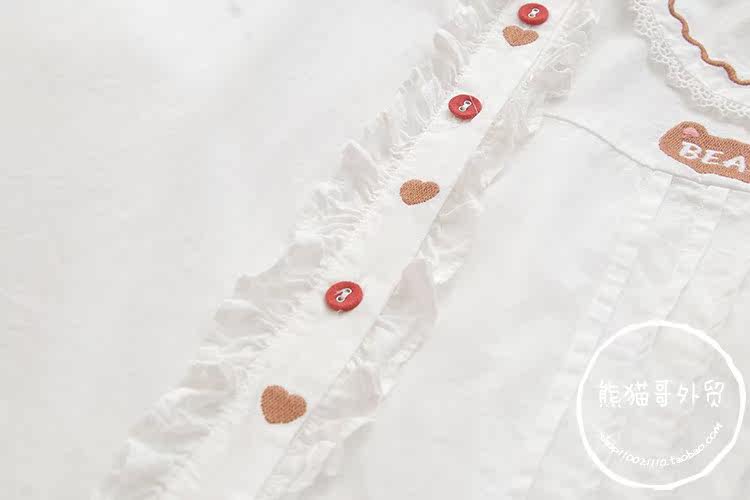 Японская милая кукла, лонгслив, рубашка, с медвежатами, с вышивкой, свободный крой