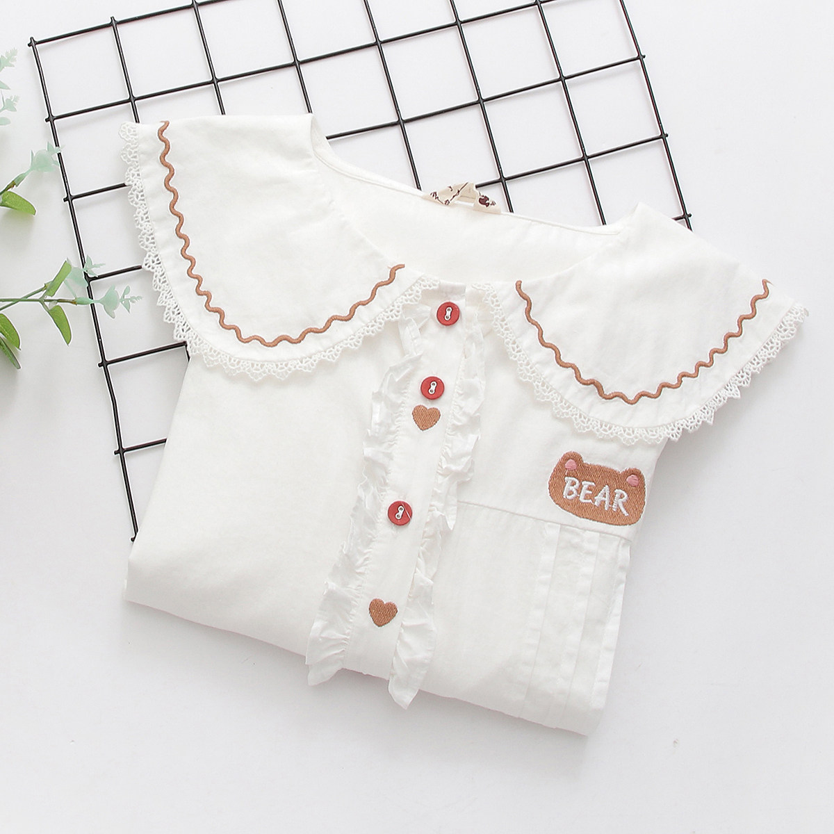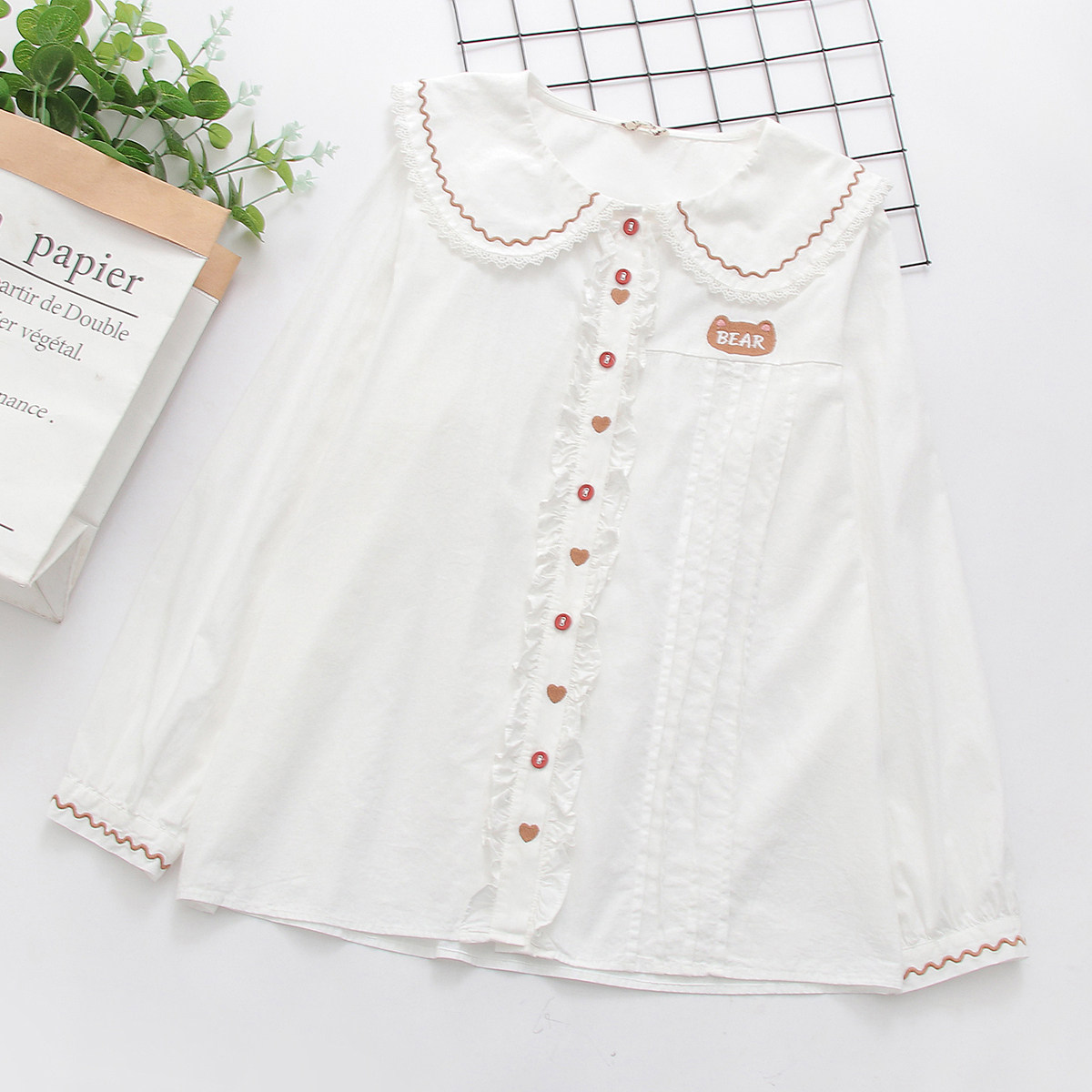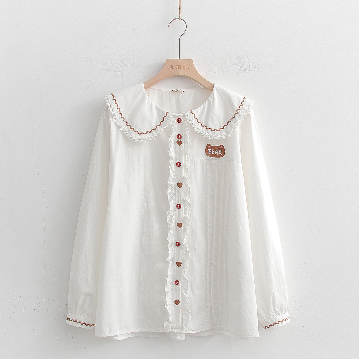 Японская милая кукла, лонгслив, рубашка, с медвежатами, с вышивкой, свободный крой