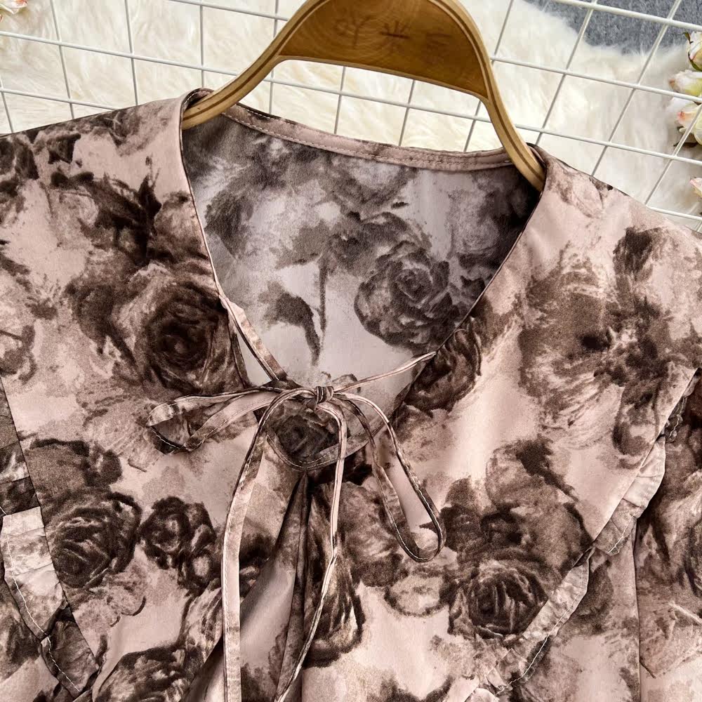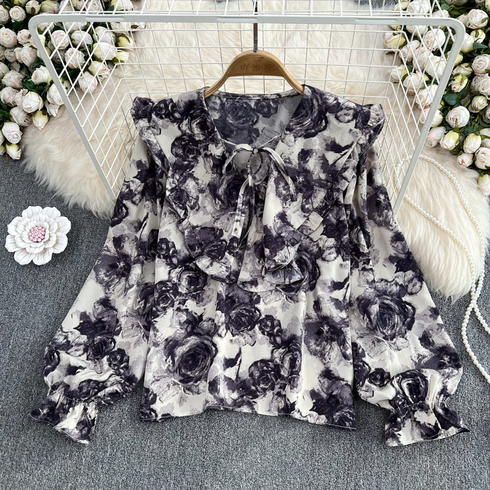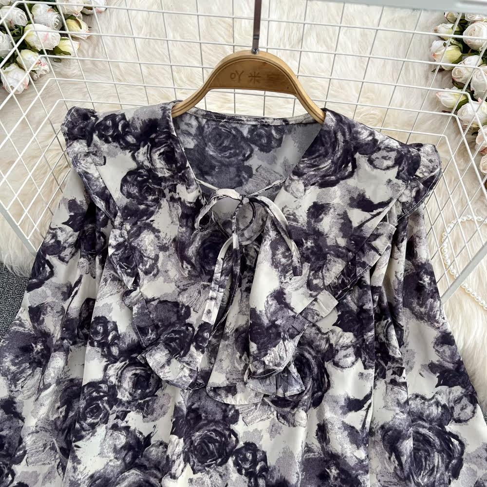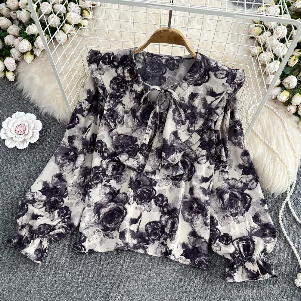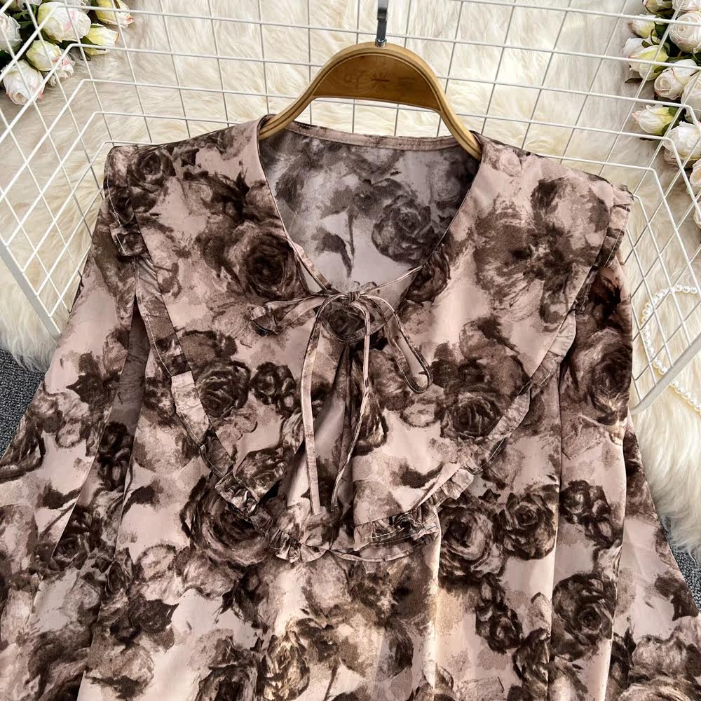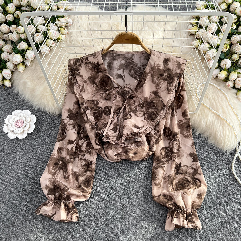 Осенняя ретро кукла, лонгслив, рубашка, кукольный воротник, свободный крой, в западном стиле