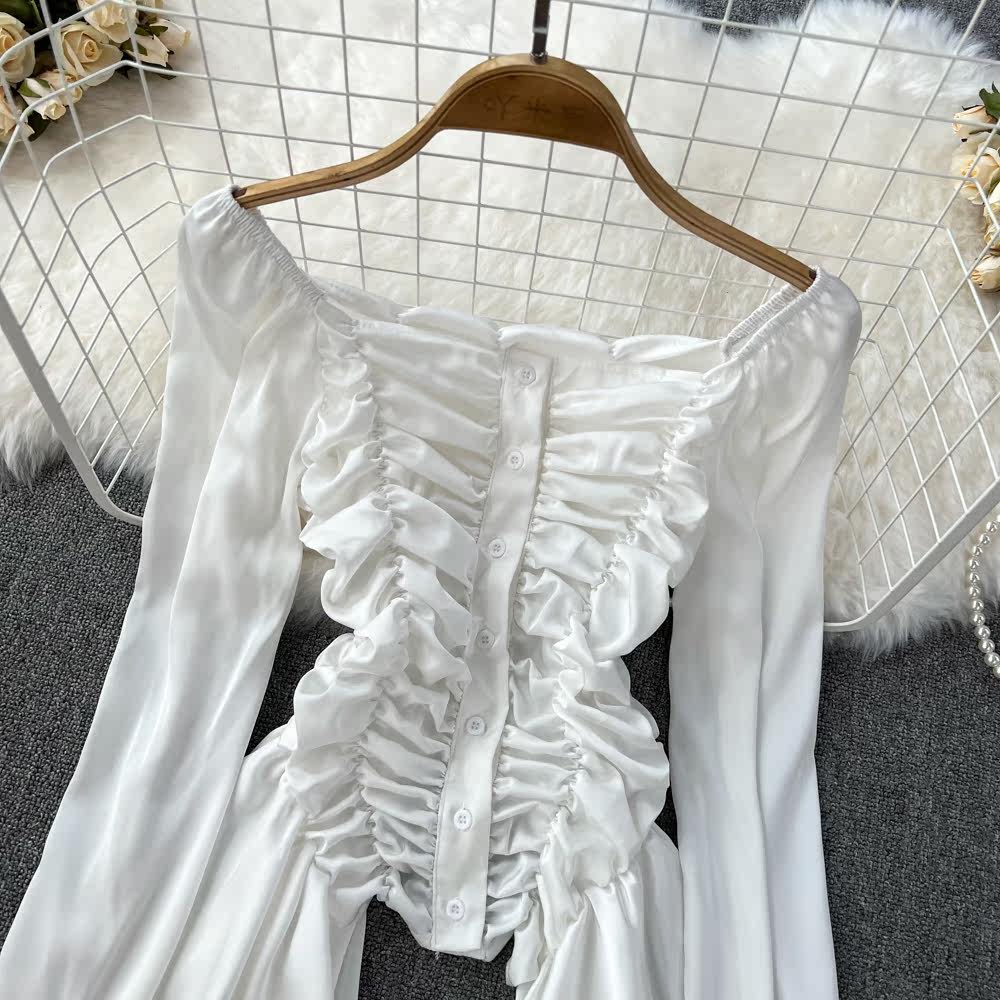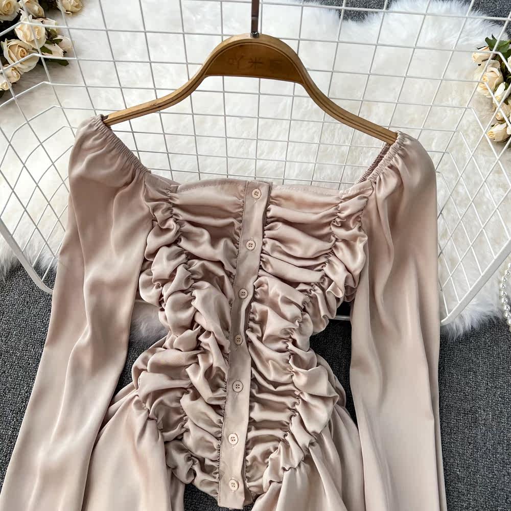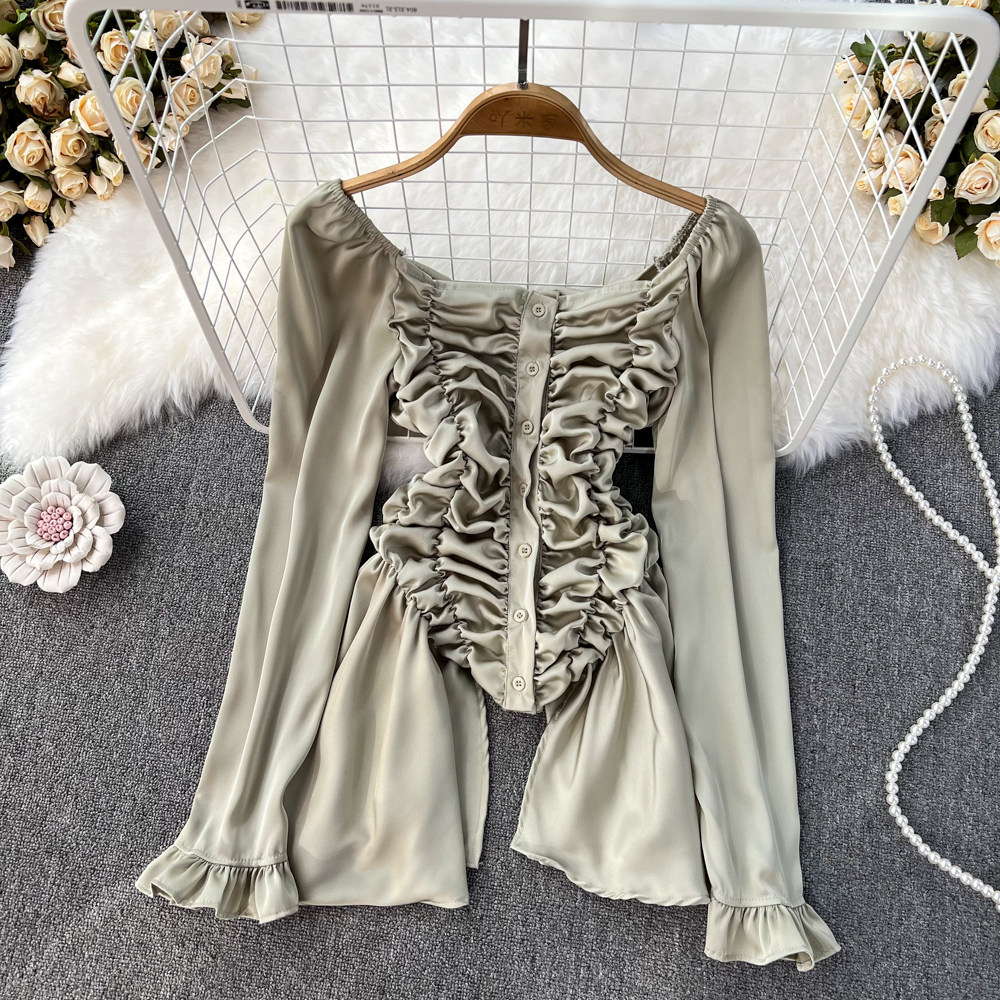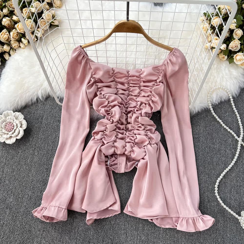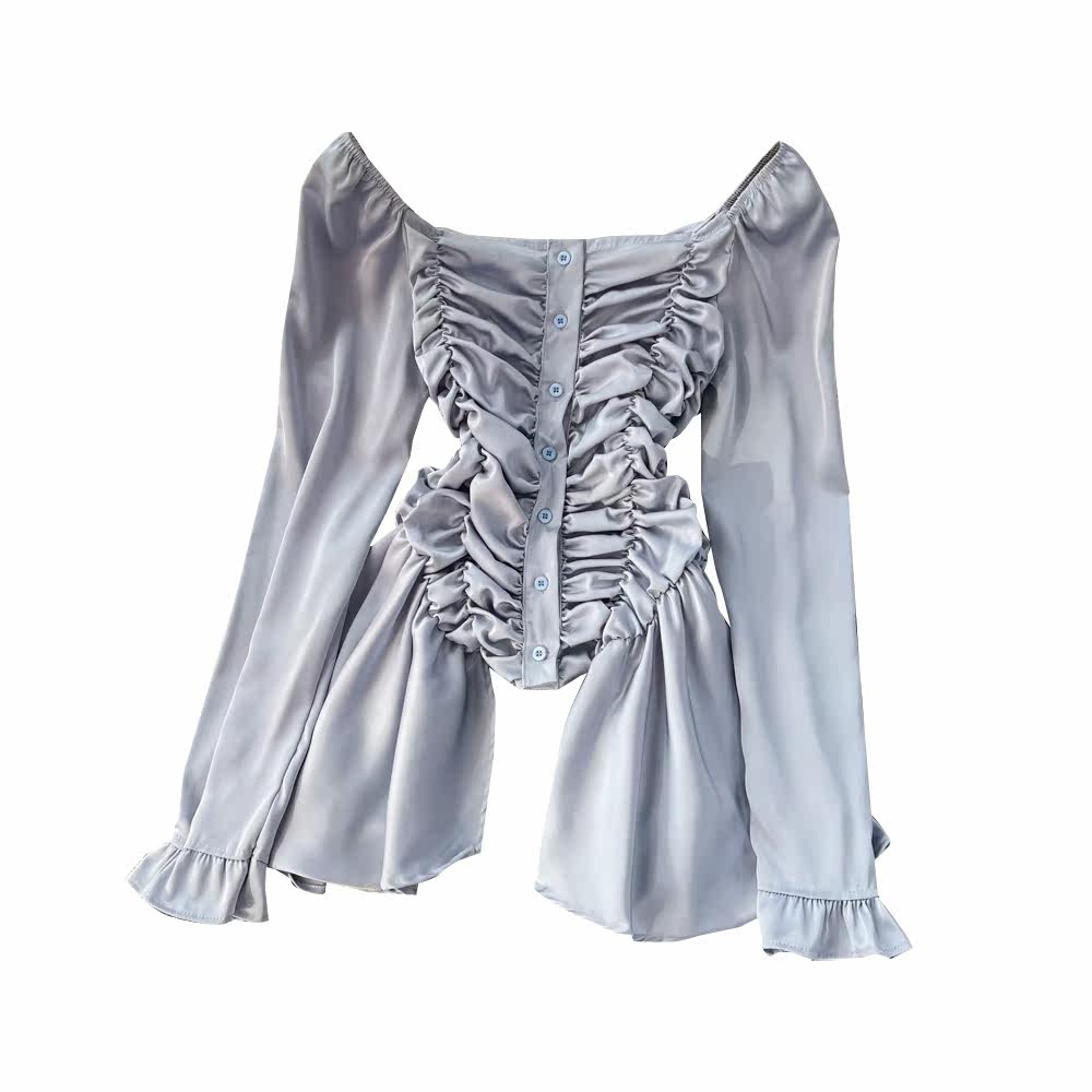 Мегафон, приталенная осенняя рубашка, дизайнерский лонгслив, квадратный вырез, с рукавом
