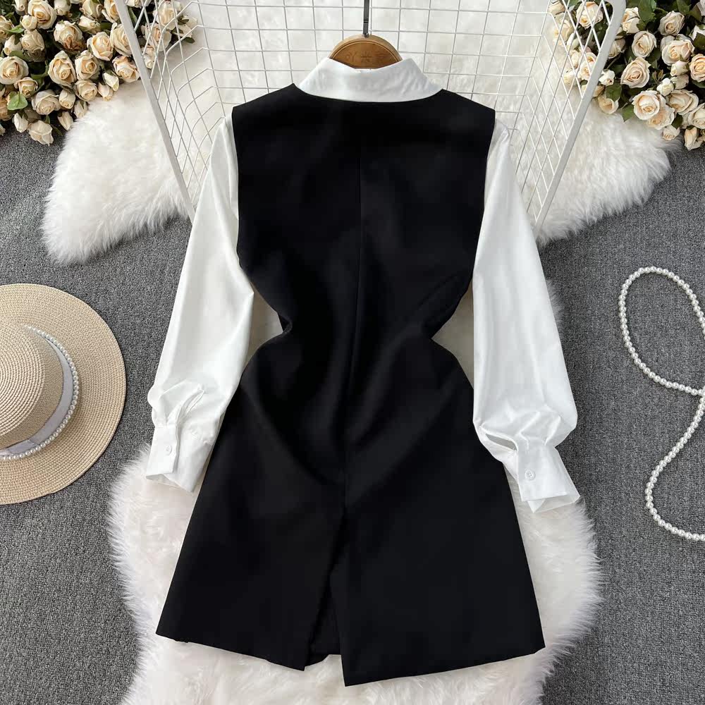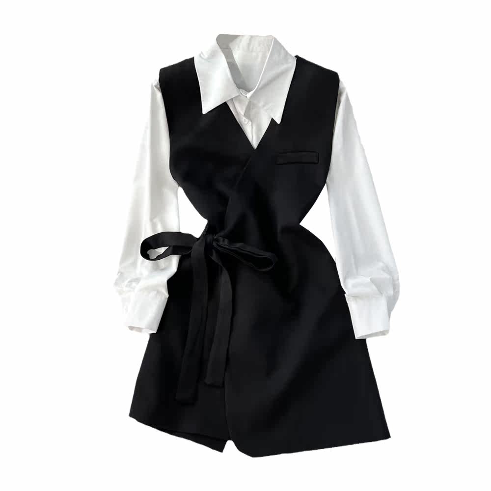 Длинный приталенный корсет, жилет, куртка, белый комплект, лонгслив, рубашка, V-образный вырез, в западном стиле, средней длины, оверсайз